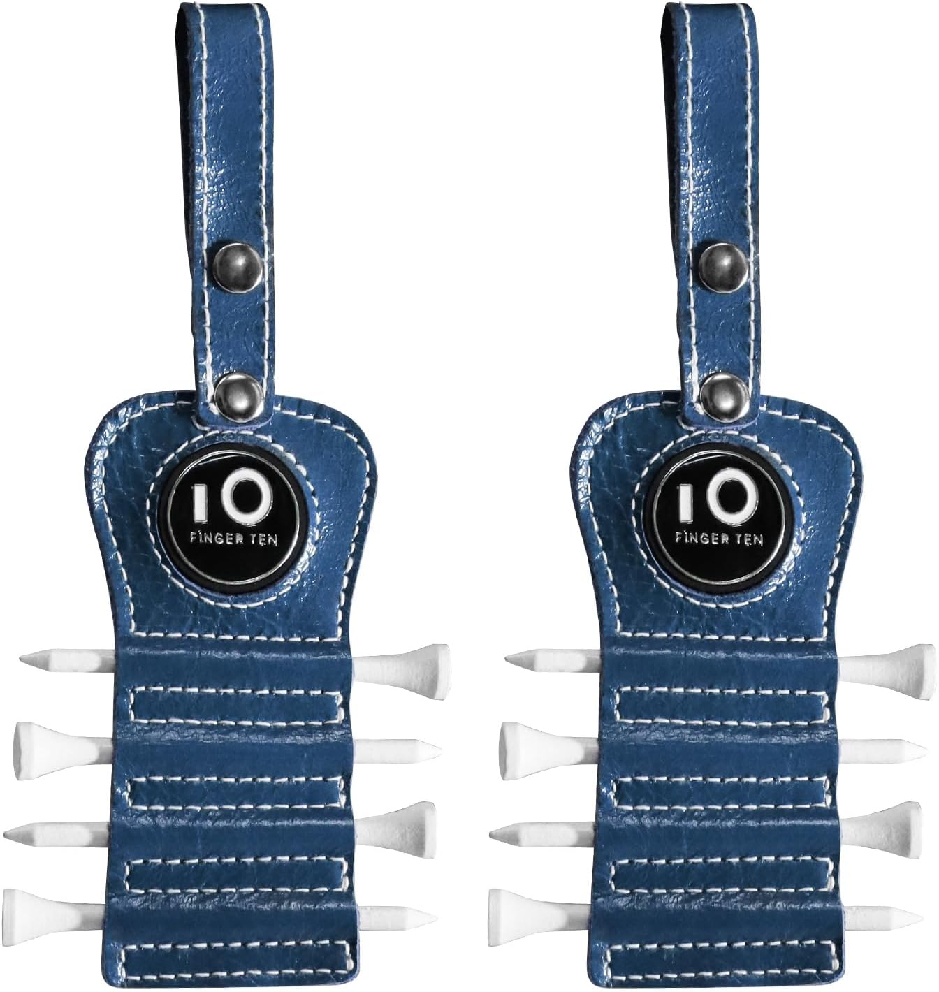 FINGER TEN Golf Tee Holder with Ball Marker and 4 Pcs Wood Tees Value 1/2 Pack, Luxury Leather Gift Hook to Golf Bag Belt Clip