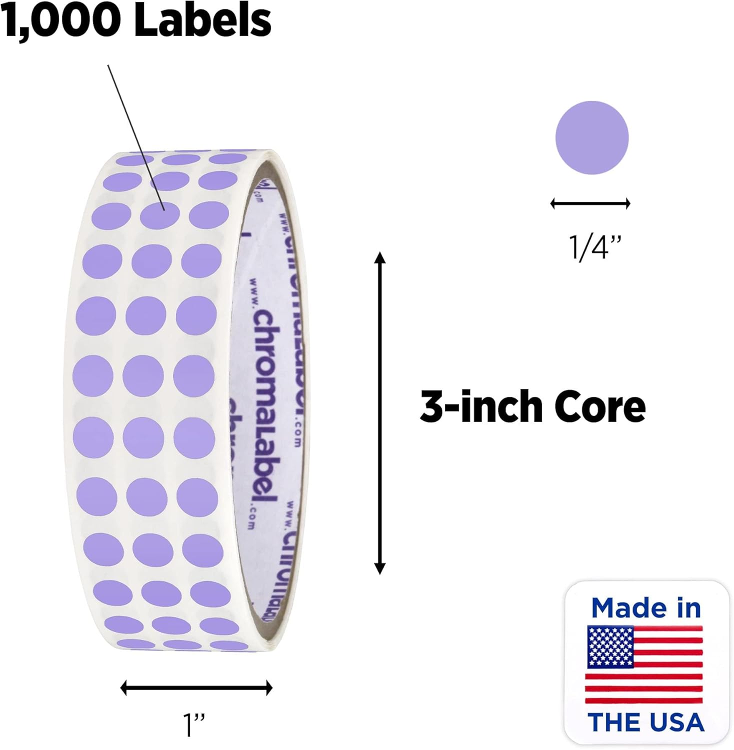 ChromaLabel 0.25 Inch Round Label Permanent Color Code Dot Stickers, 1000 Labels per Roll, Lavender