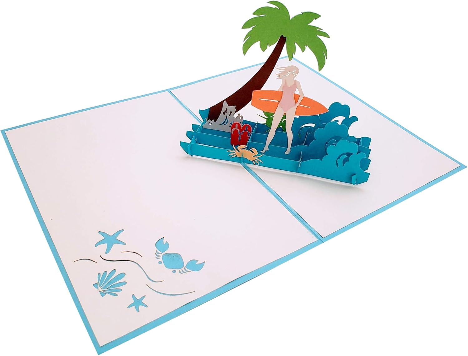 - π **Unique Surfing Design**: Features a stunning 3D pop-up surfing scene, perfect for beach lovers and surfing enthusiasts. An eye-catching design that adds a fun, personalized touch to any special occasion.