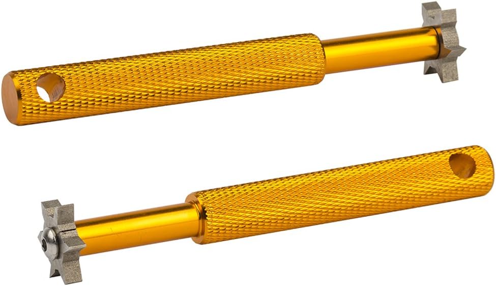 - 4. Highest Quality metal construction. Made from high grade precision tool Vacuum Heat Treated Steel with a maximum hardness of 65 Rockwell for maximum durability and effectiveness. Groove sharpener is precision ground and engineered to exacting tolerances to ensure that it does not compromise USGA rules regarding width and depth.