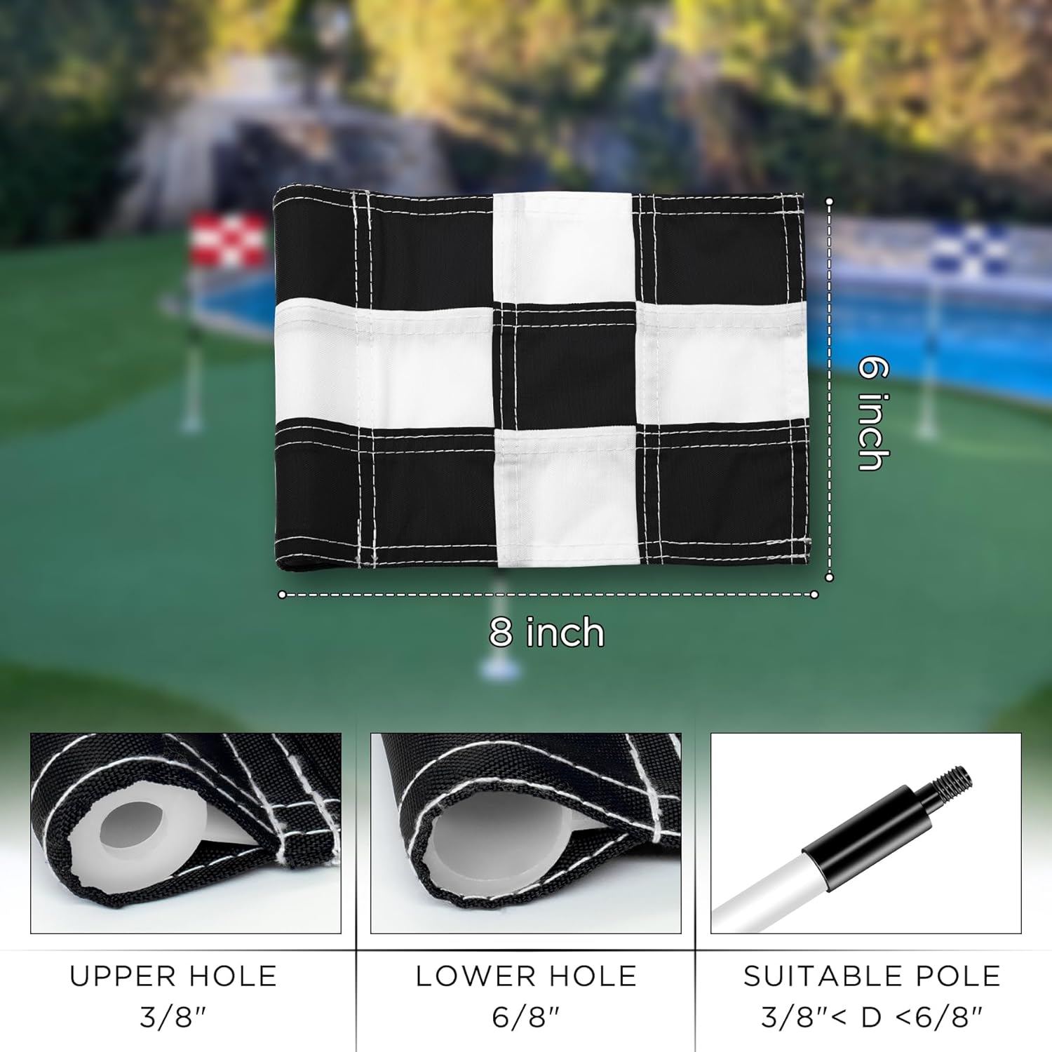 - Superior Craftsmanship: Every check square and the edge is meticulously double-stitched, ensuring the putting green flag stays intact and durable for prolonged usage.