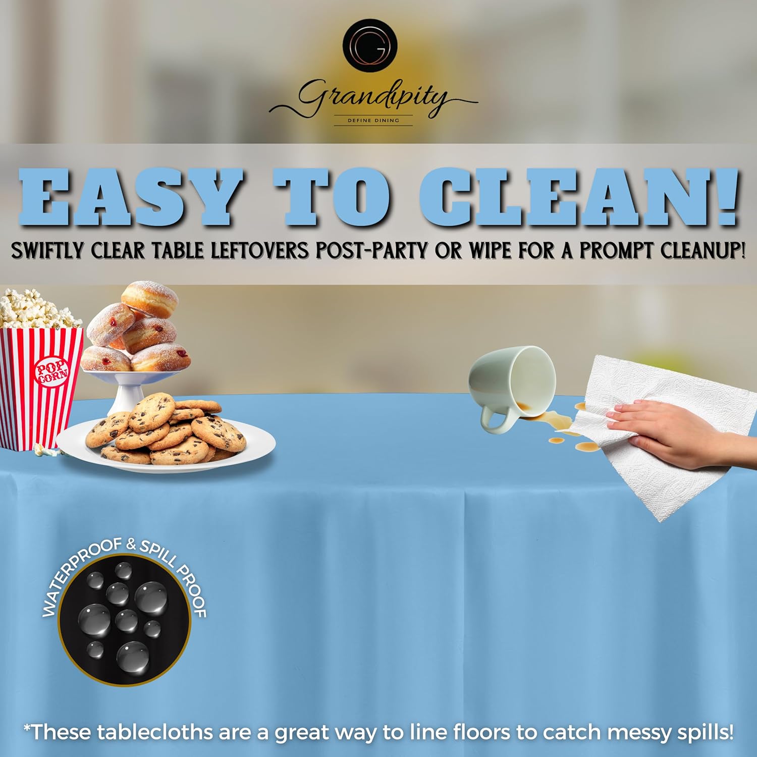 Grandipity 12 Pack Premium Disposable Plastic Tablecloth 84" Inch Decorative Round Table Cover - Sky Blue