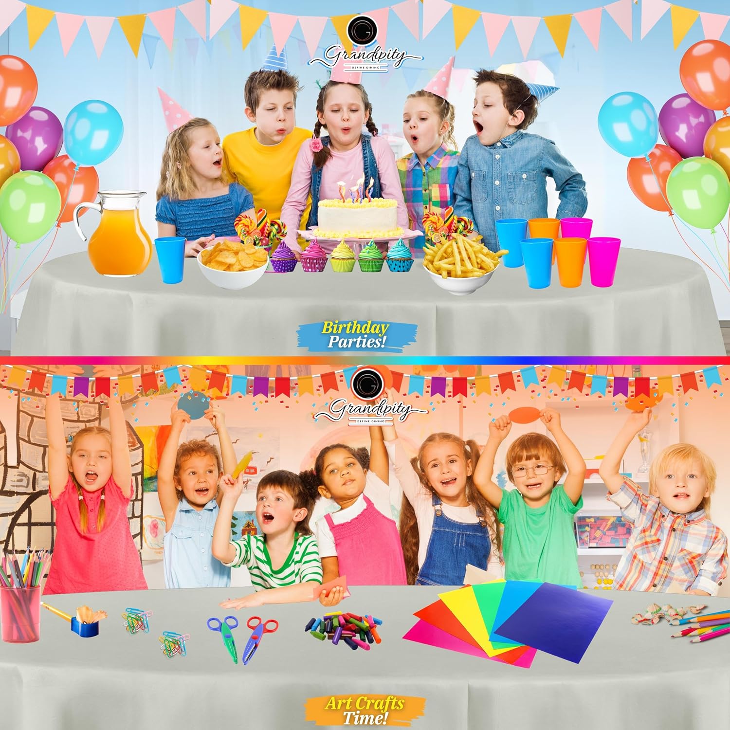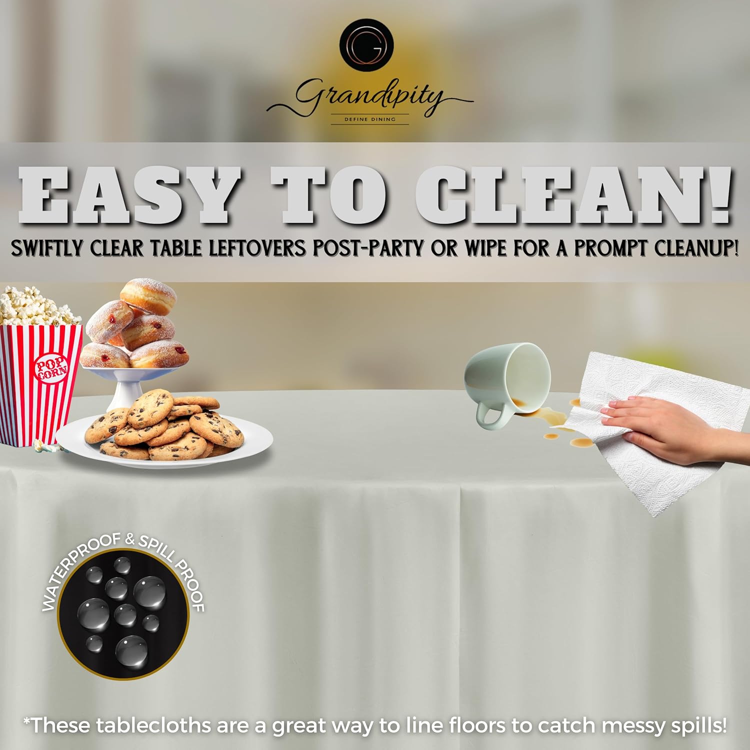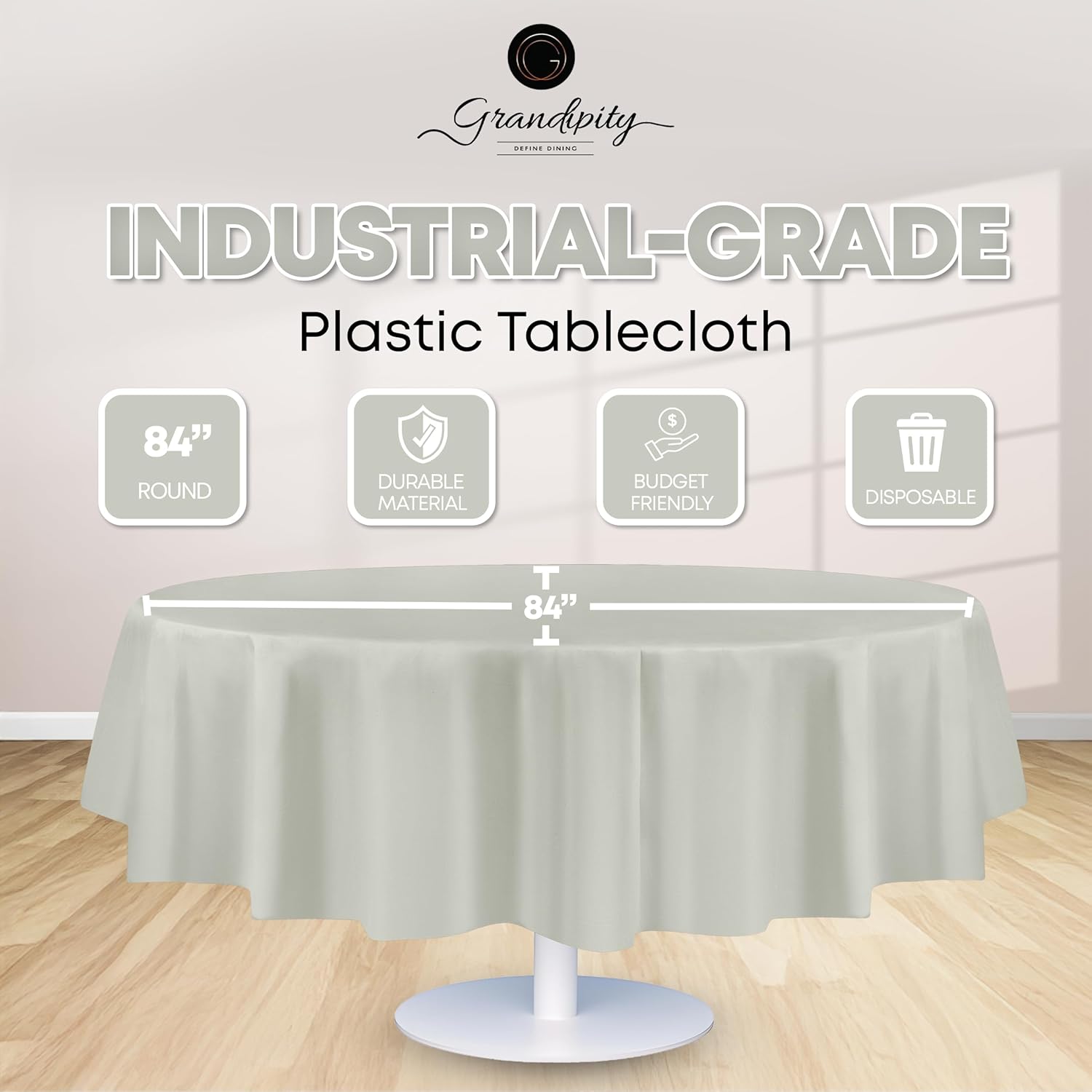 Grandipity 12 Pack Premium Disposable Plastic Tablecloth 84" Inch Decorative Round Table Cover - Light Grey