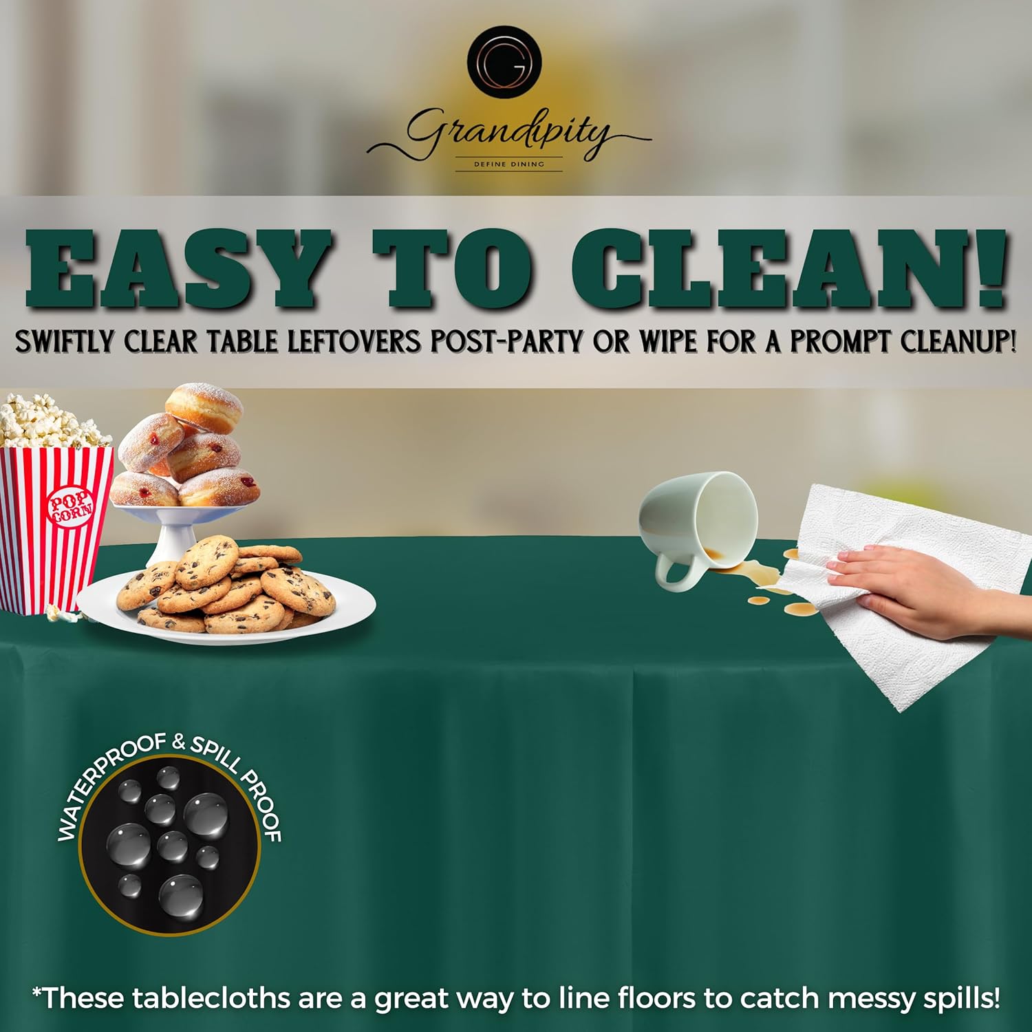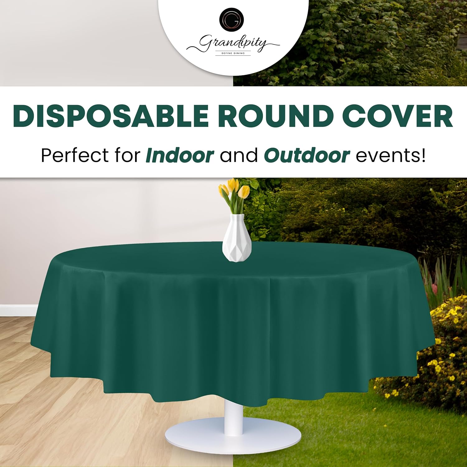 Grandipity 12 Pack Premium Disposable Plastic Tablecloth 84" Inch Decorative Round Table Cover - Dark Green