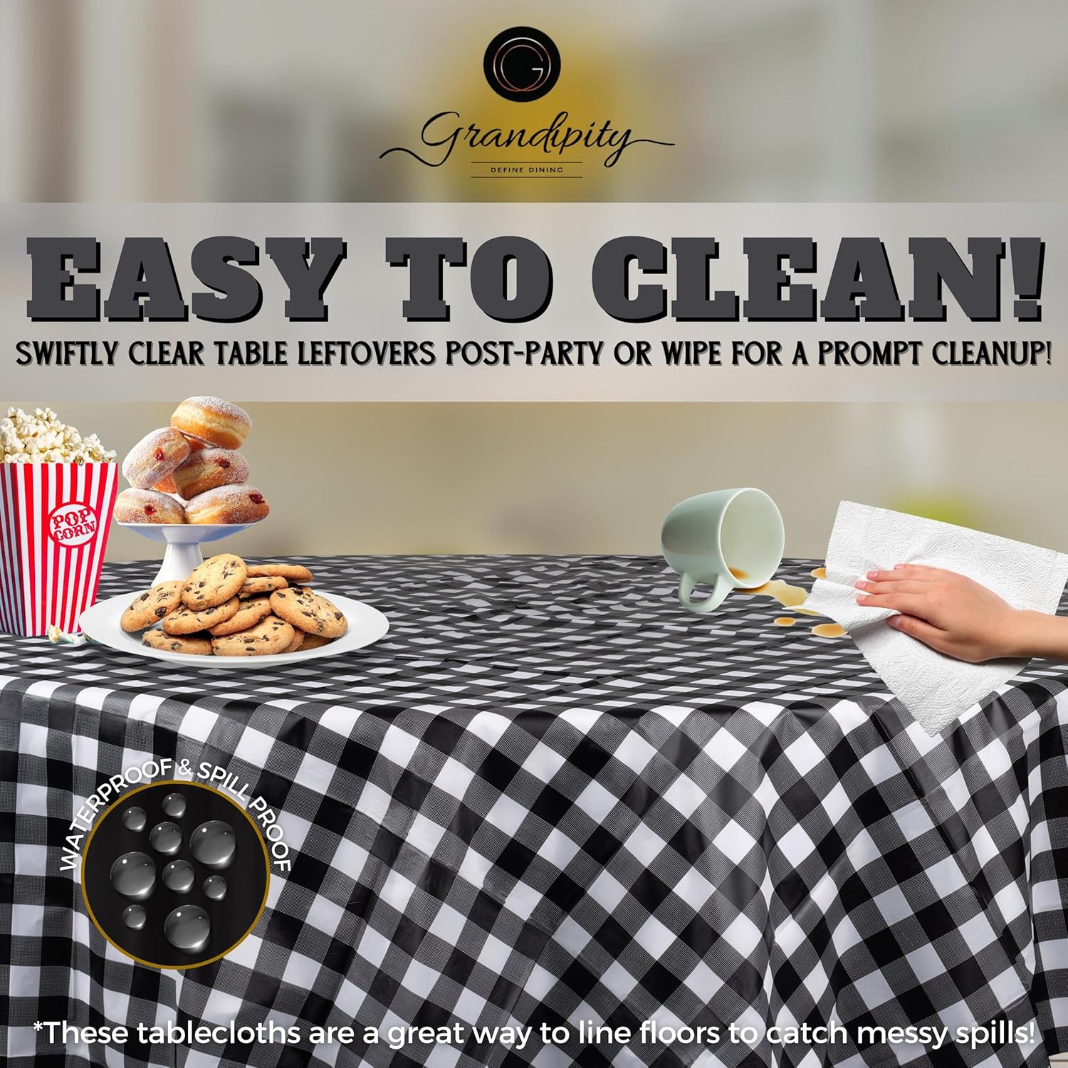 - ๐ MULTIPLE PURPOSES: Theyโre not just for parties but great for decorations! Perfect party supplies for indoor and outdoor eating. Having some friends over to paint your new home? Doing arts and crafts with your little ones? These round tablecloths are a great way to line floors to catch the mess. Cover your round tables with our disposable checkered or solid table coverings for indoor and outdoor celebrations.