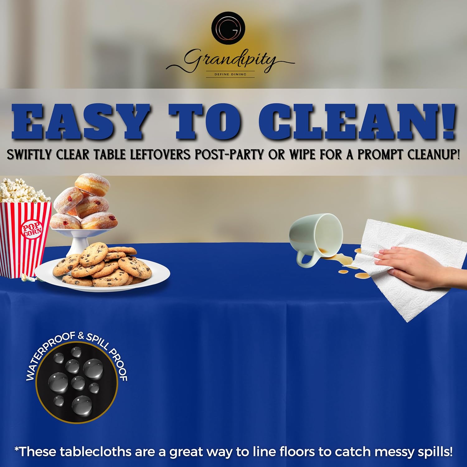 - ๐ EASY CLEAN UP: These round tablecloths are great at picking up any messy spills from food, drinks, paint from arts and crafts sessions and more! Whatโs better? Theyโre completely disposable round plastic tablecloths, so enjoy the party without the hassle of cleaning up.