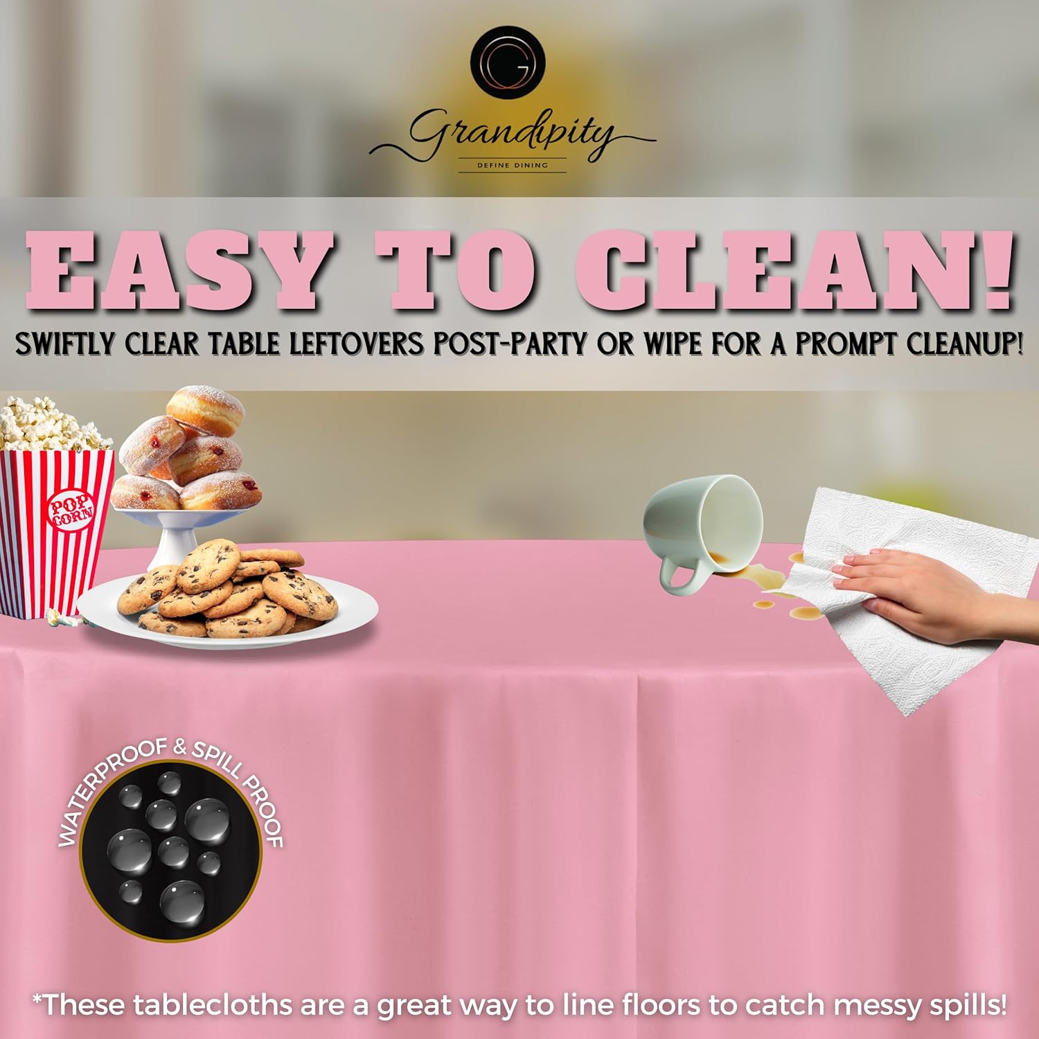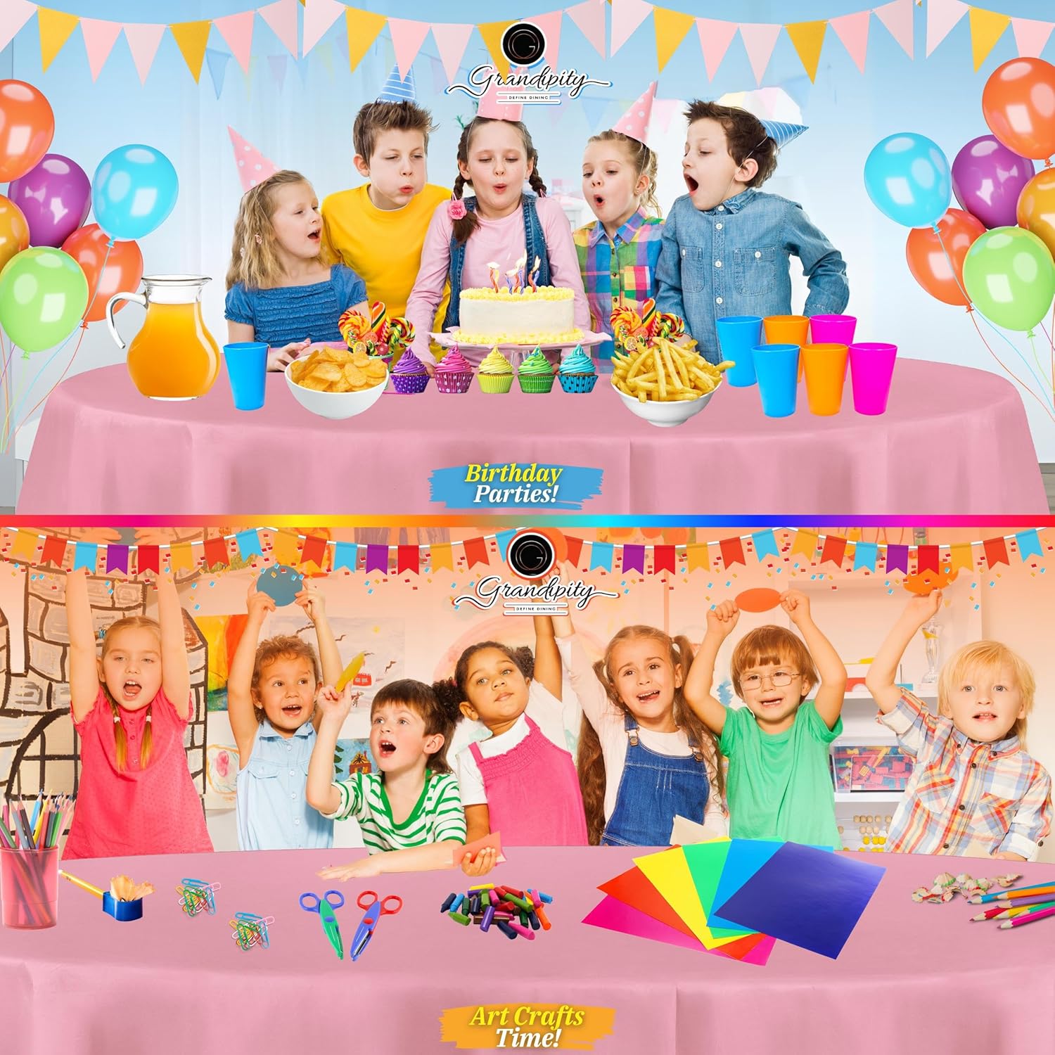 Grandipity 12 Pack Premium Disposable Plastic Tablecloth 84" Inch Decorative Round Table Cover - Pink