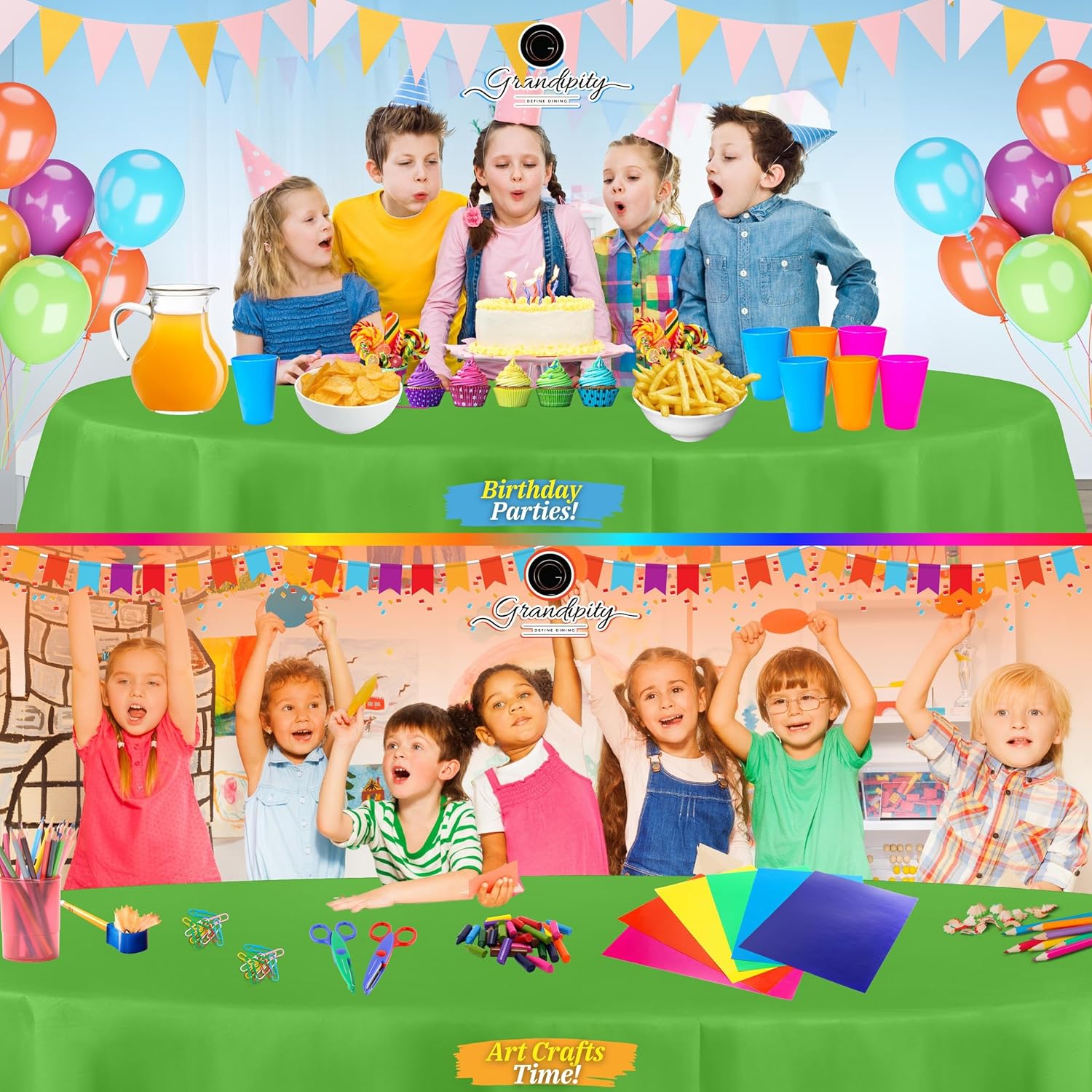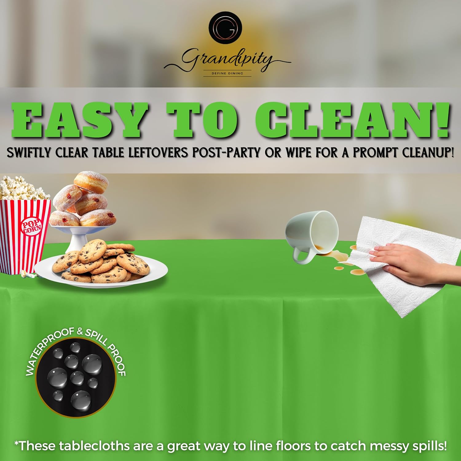 - ๐ EASY CLEAN UP: These round tablecloths are great at picking up any messy spills from food, drinks, paint from arts and crafts sessions and more! Whatโs better? Theyโre completely disposable round plastic tablecloths, so enjoy the party without the hassle of cleaning up.