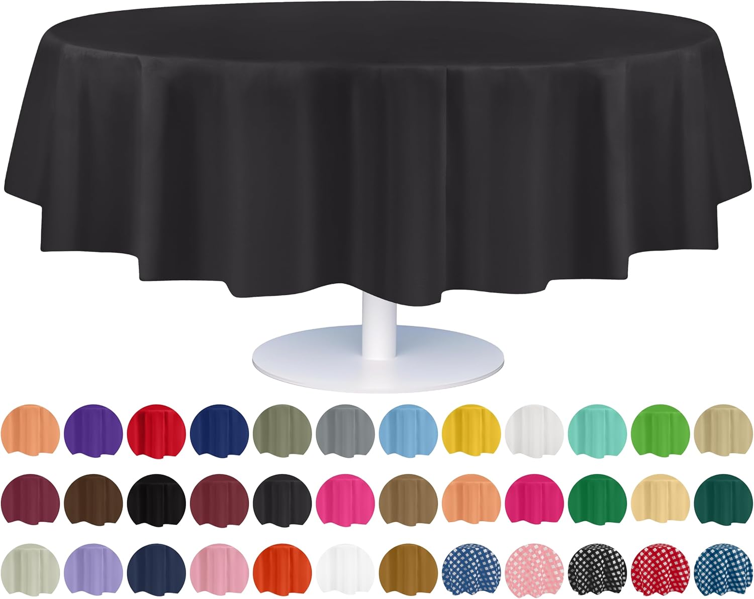 - ๐ MULTIPLE PURPOSES: Theyโre not just for parties but great for decorations! Perfect party supplies for indoor and outdoor eating. Having some friends over to paint your new home? Doing arts and crafts with your little ones? These round tablecloths are a great way to line floors to catch the mess. Cover your round tables with our disposable checkered or solid table coverings for indoor and outdoor celebrations.