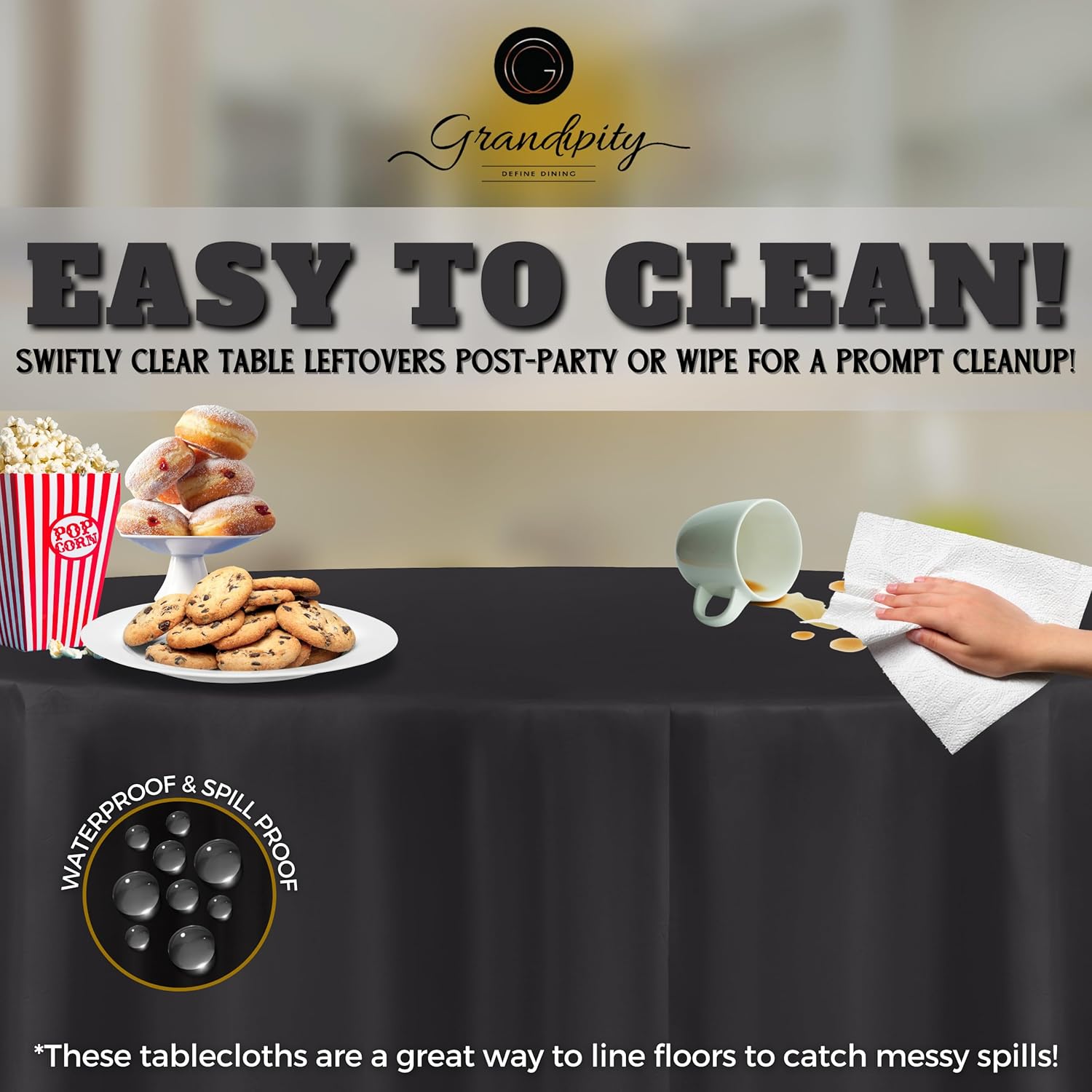 - ๐ EASY CLEAN UP: These round tablecloths are great at picking up any messy spills from food, drinks, paint from arts and crafts sessions and more! Whatโs better? Theyโre completely disposable round plastic tablecloths, so enjoy the party without the hassle of cleaning up.