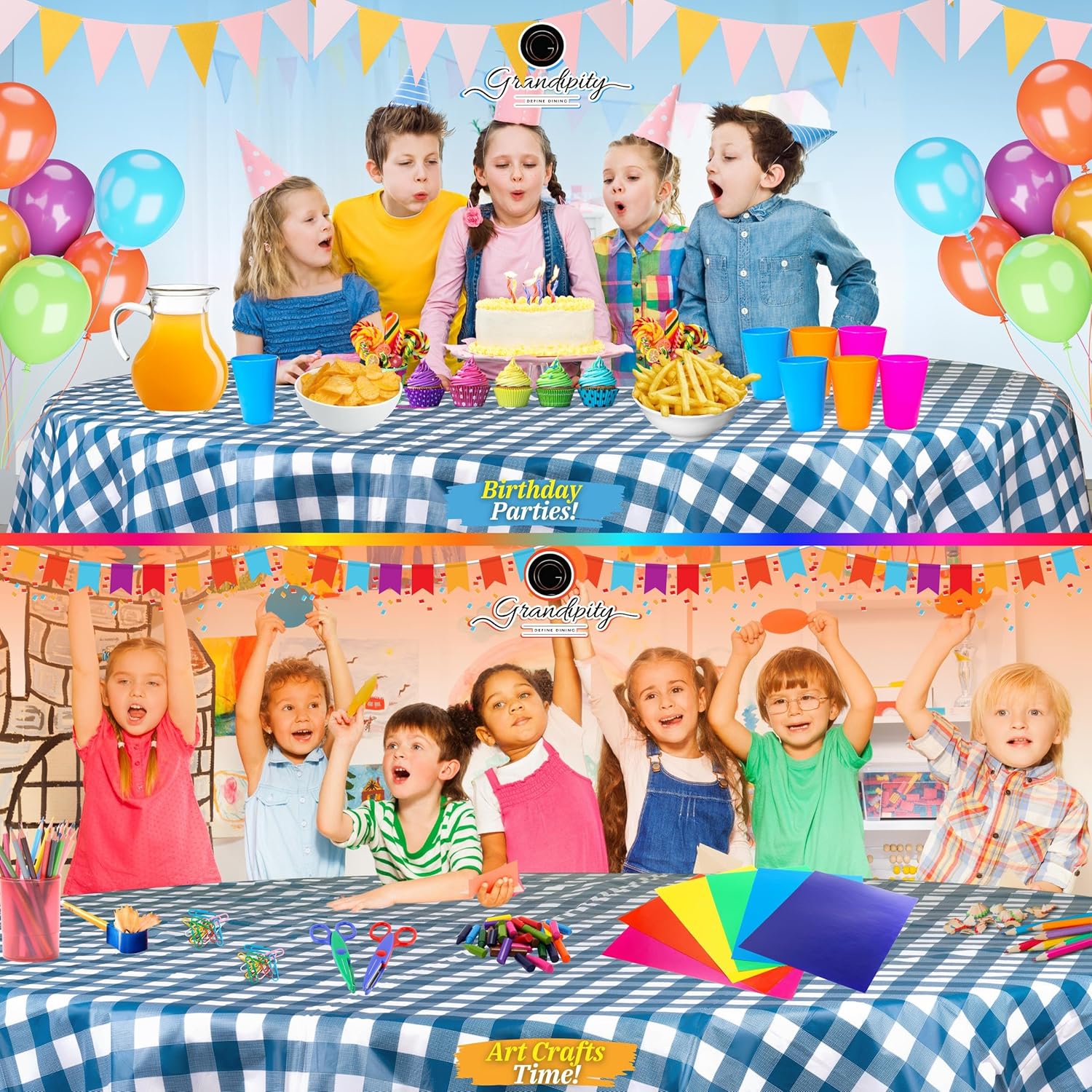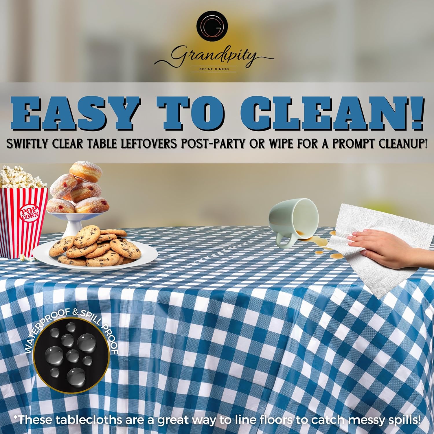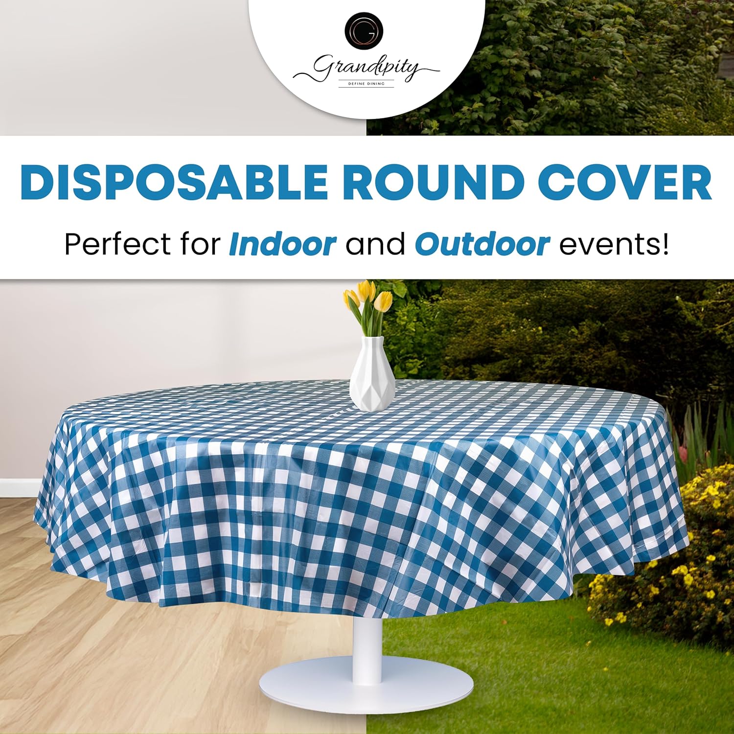 - ๐ MULTIPLE PURPOSES: Theyโre not just for parties but great for decorations! Perfect party supplies for indoor and outdoor eating. Having some friends over to paint your new home? Doing arts and crafts with your little ones? These round tablecloths are a great way to line floors to catch the mess. Cover your round tables with our disposable checkered or solid table coverings for indoor and outdoor celebrations.