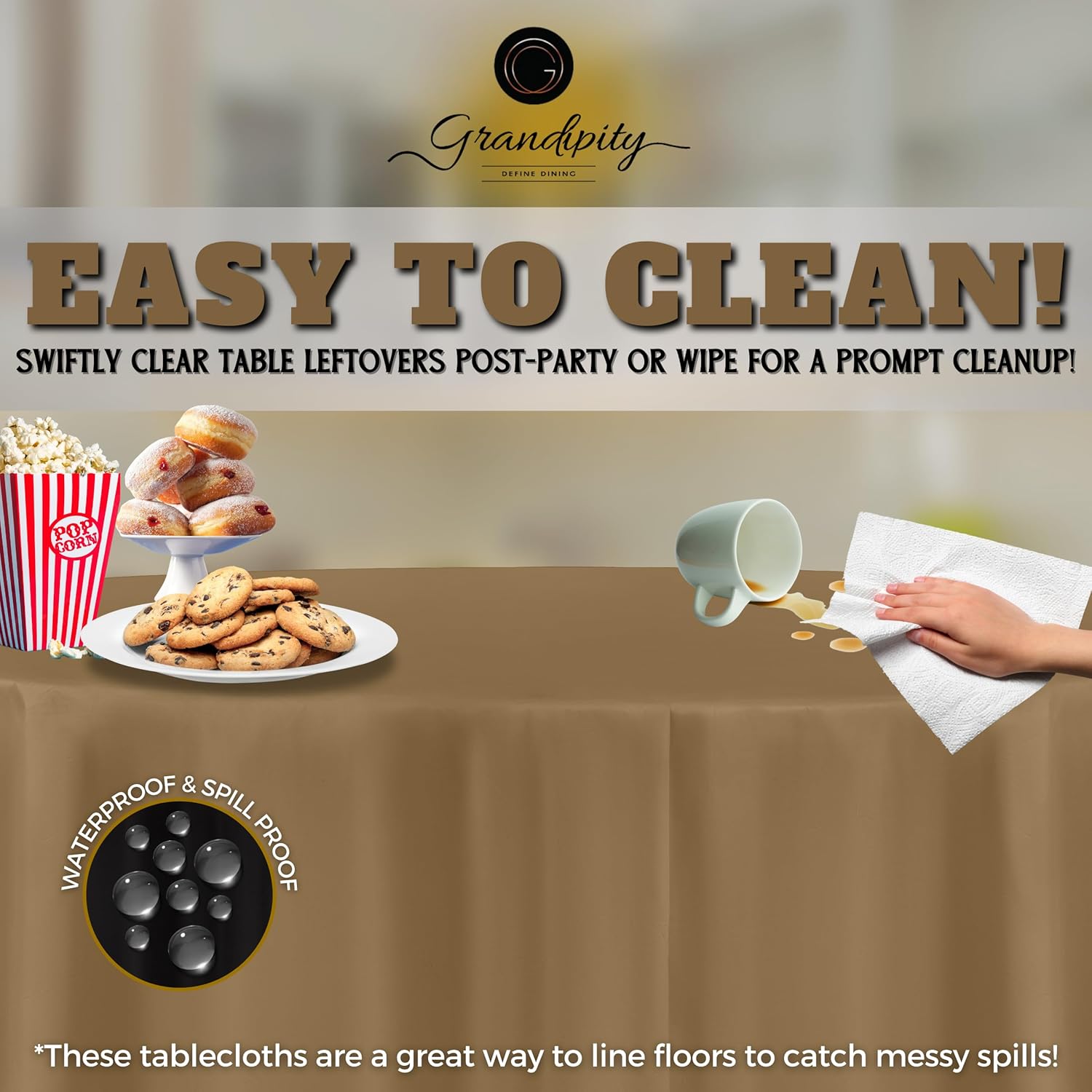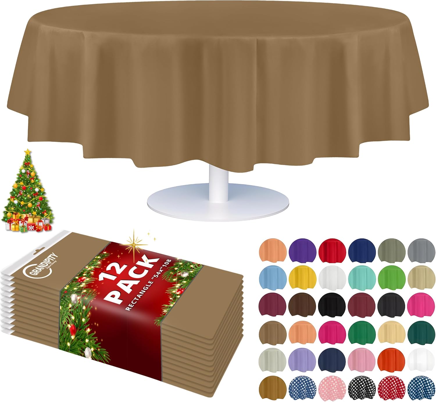 Grandipity 12 Pack Premium Disposable Plastic Tablecloth 84" Inch Decorative Round Table Cover - Gold