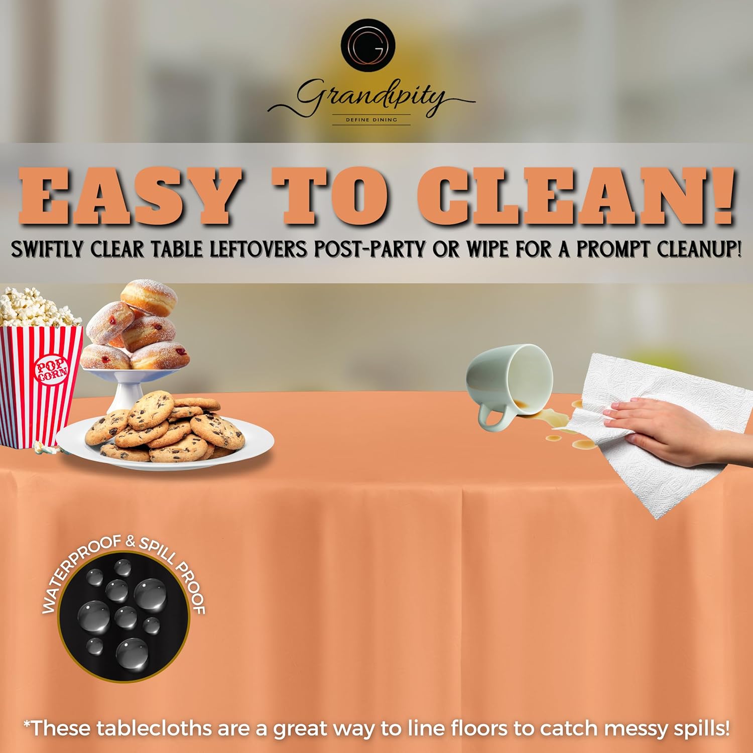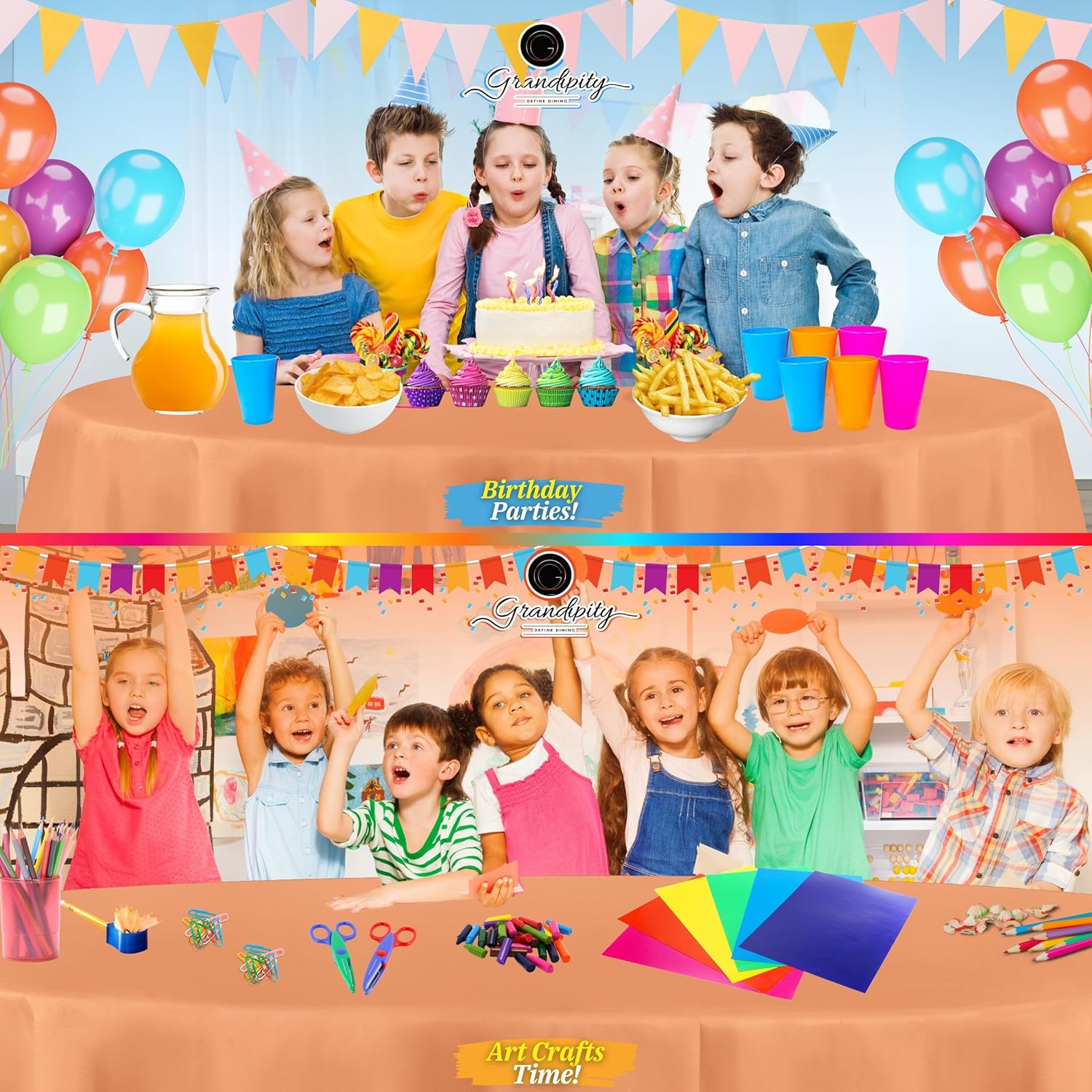 Grandipity Peach 12 Pack Premium Disposable Plastic Tablecloth 84" Inch Decorative Round Table Cover