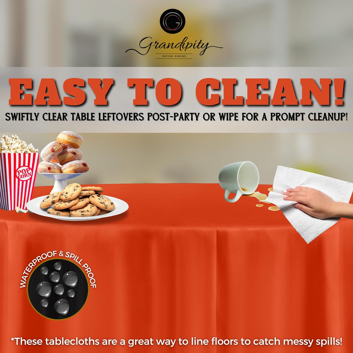 - ๐ EASY CLEAN UP: These round tablecloths are great at picking up any messy spills from food, drinks, paint from arts and crafts sessions and more! Whatโs better? Theyโre completely disposable round plastic tablecloths, so enjoy the party without the hassle of cleaning up.