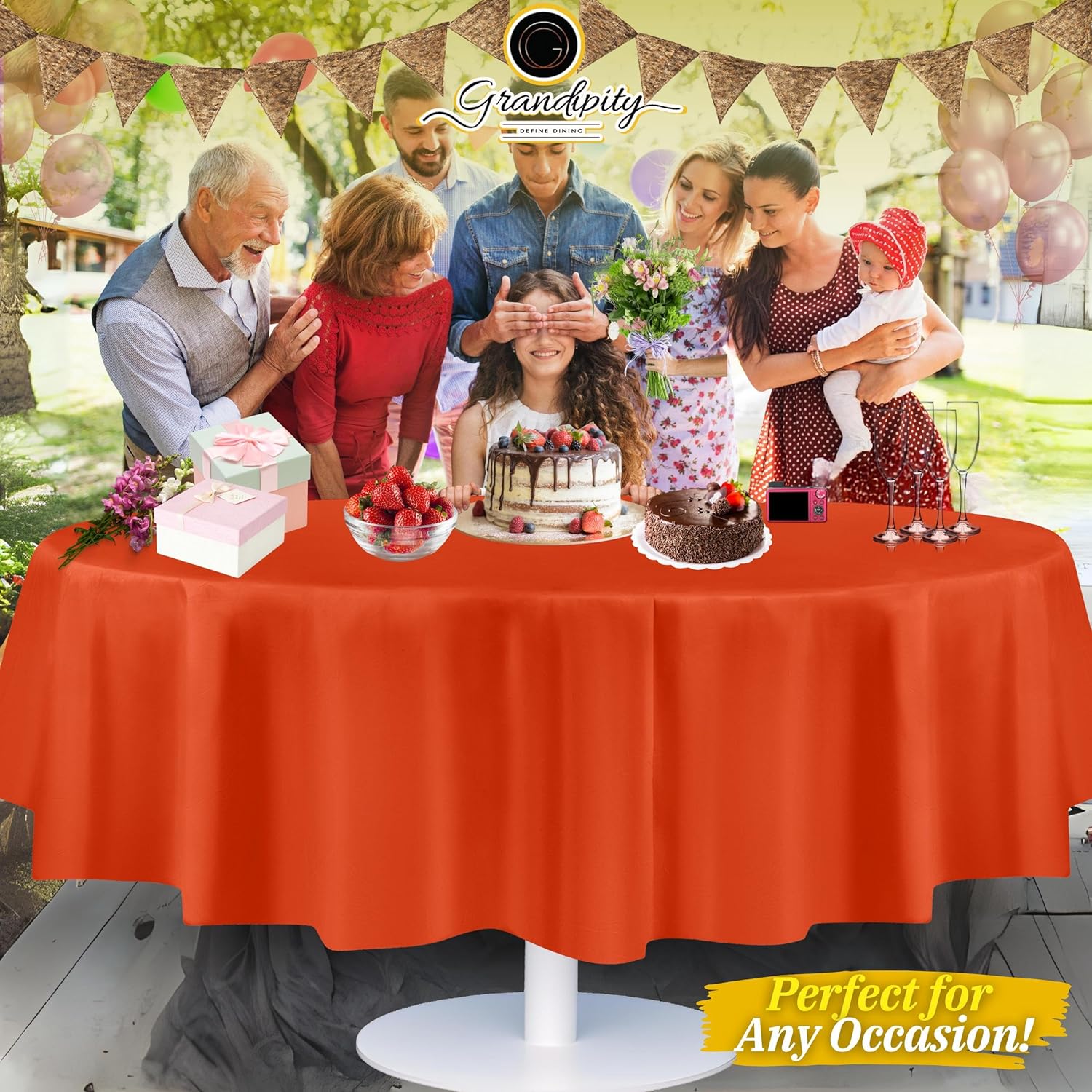 - ๐ PERFECT FIT: 84" round tablecloth disposable, covers your round table to perfection. You can also cut it to fit a smaller table. Budget Friendly. Featuring a fade and tear resistant tablecloths, our round table covers easily protect your tables and furniture from scratches, stains and sun rays. Inspires a clean sense of style at any event or meal youโre hosting with these elegant tablecloths.