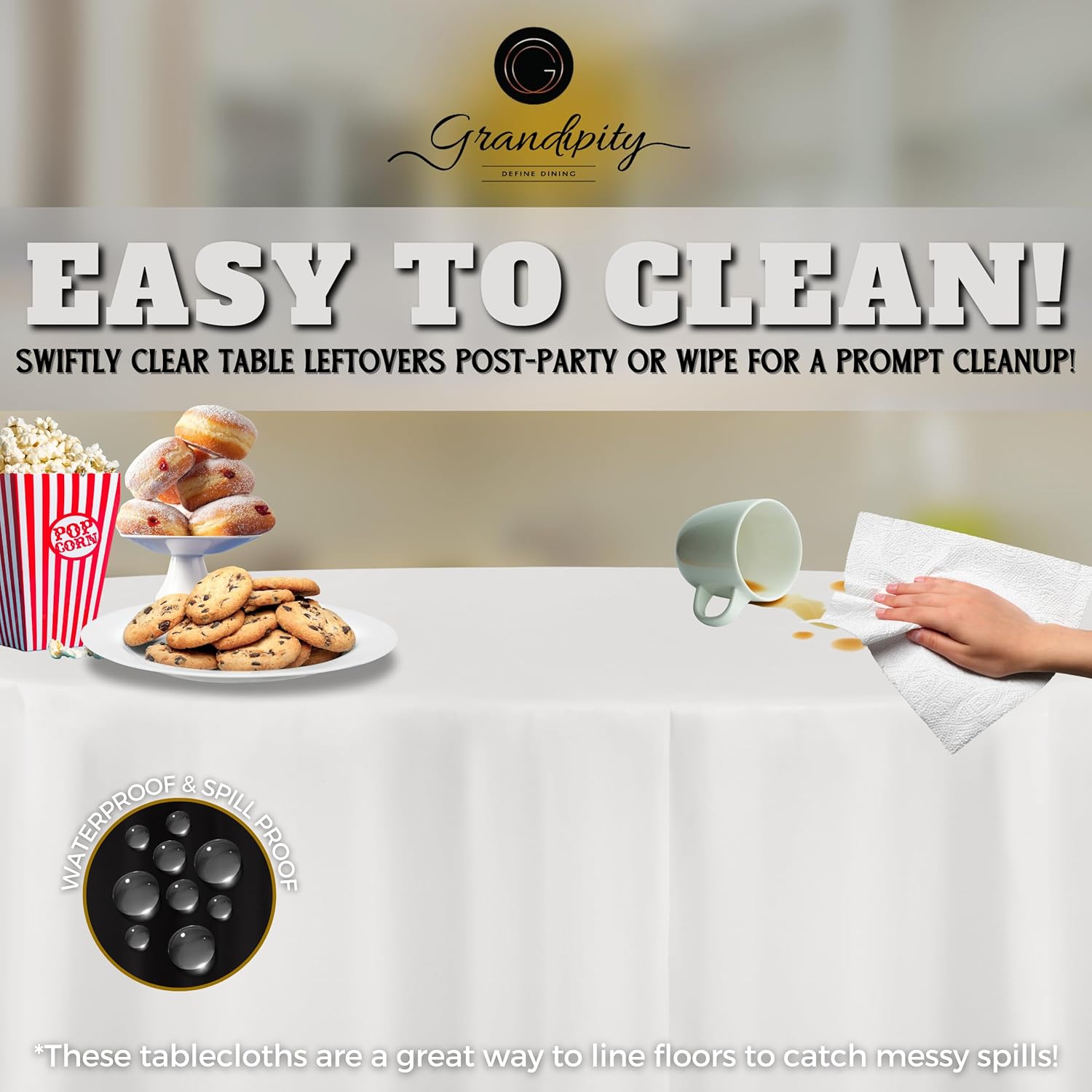 - ๐ EASY CLEAN UP: These round tablecloths are great at picking up any messy spills from food, drinks, paint from arts and crafts sessions and more! Whatโs better? Theyโre completely disposable round plastic tablecloths, so enjoy the party without the hassle of cleaning up.