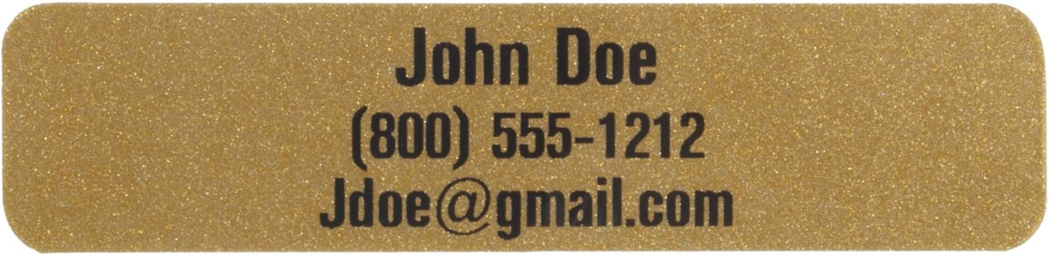 - 24 Durable Tags: There are 24 customized golf labels in your kit. Our labels are available in classic color combinations of Gold, Silver and Black. (16) 2 1/16” x ½" labels ideal for Clubs, Bags, Tool identification, Sporting Goods, etc. and (8) 2 3/16” x 3/8” labels great for helmets, sunglasses and anything easy to misplace.
