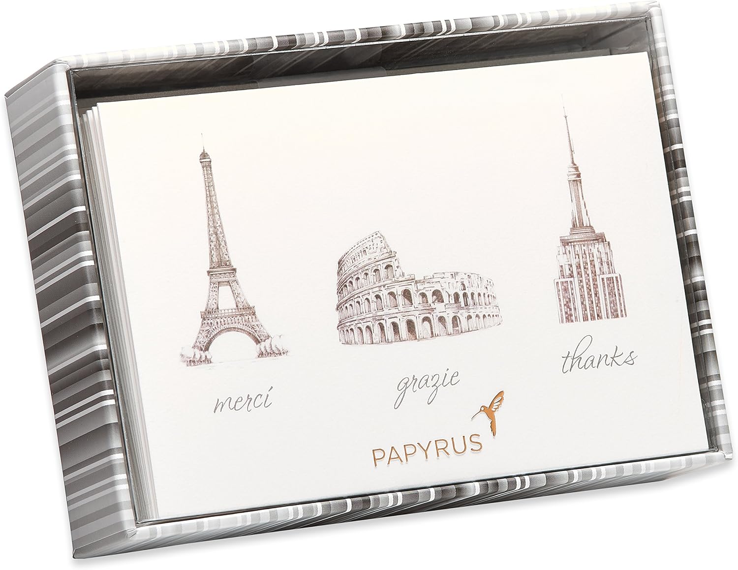 Papyrus Thank You Cards with Envelopes, World Icons (14-Count)