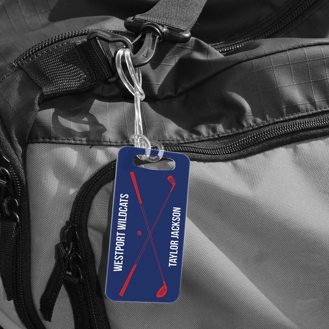 - GRAB & GO! The perfect way to easily identify your bag at the airport or in the locker room. No need to waste vacation or practice time trying to identify your bag, with our custom bag tags your bag will stand out no matter where it is. Your clubs are the most important part for a great golf vacation. Now you donβt have to worry about finding your clubs in the crowded airport. Our bag tags come in three sizes: Small (L 3.5" X W 1.75") Medium (L 4" X W 2.75") Large (L 5.5" X W 3").