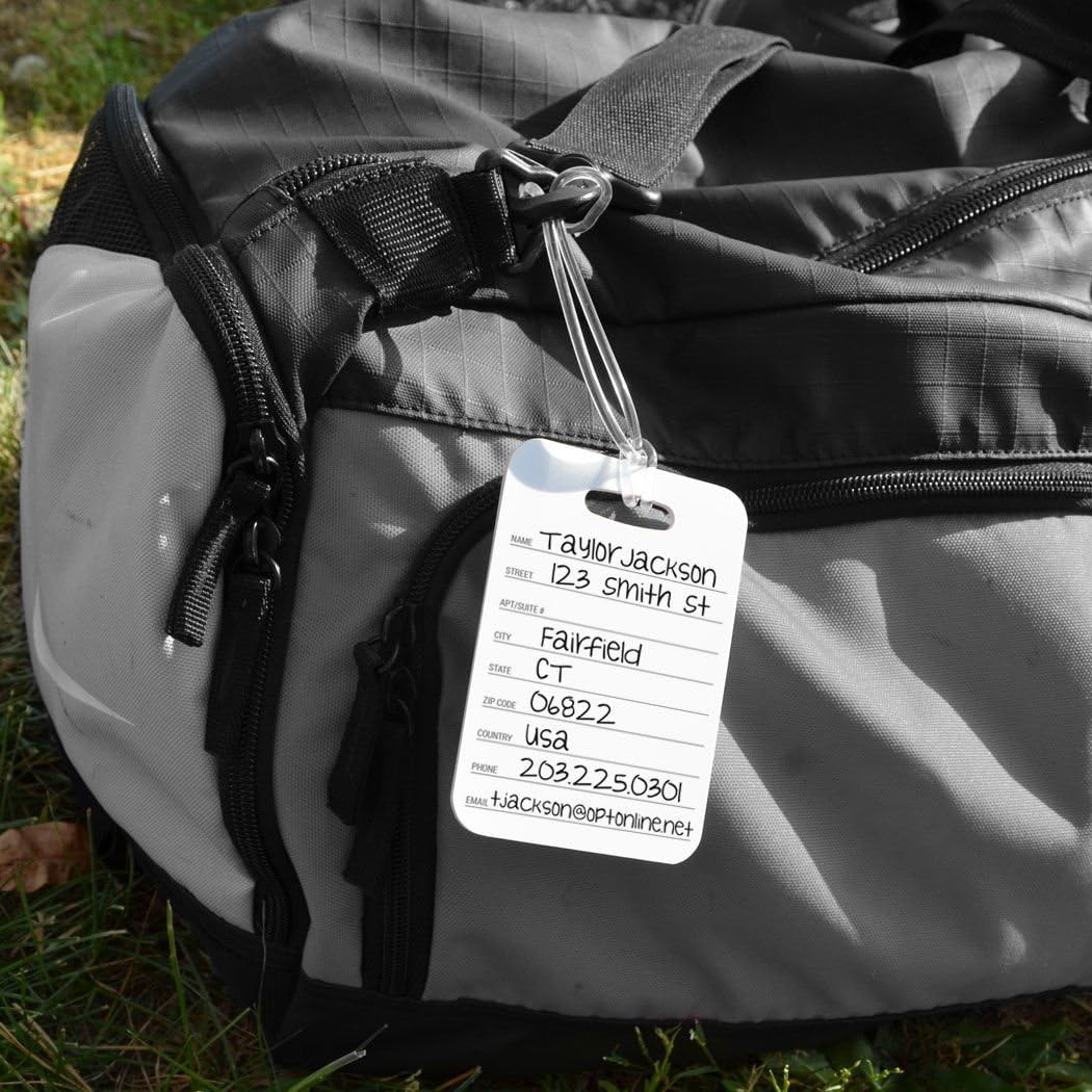 - EXTREMELEY DURABLE! Our golf bag tag is made from a sturdy plastic material making it tough enough to endure the toughest of travel conditions. Easily attach it to your luggage or everyday bag with the strong, long-lasting, clear flexible loop at the top. It is sure to stay on your bag whether it is being tossed around at the airport or rolling around the car on the way to the course.