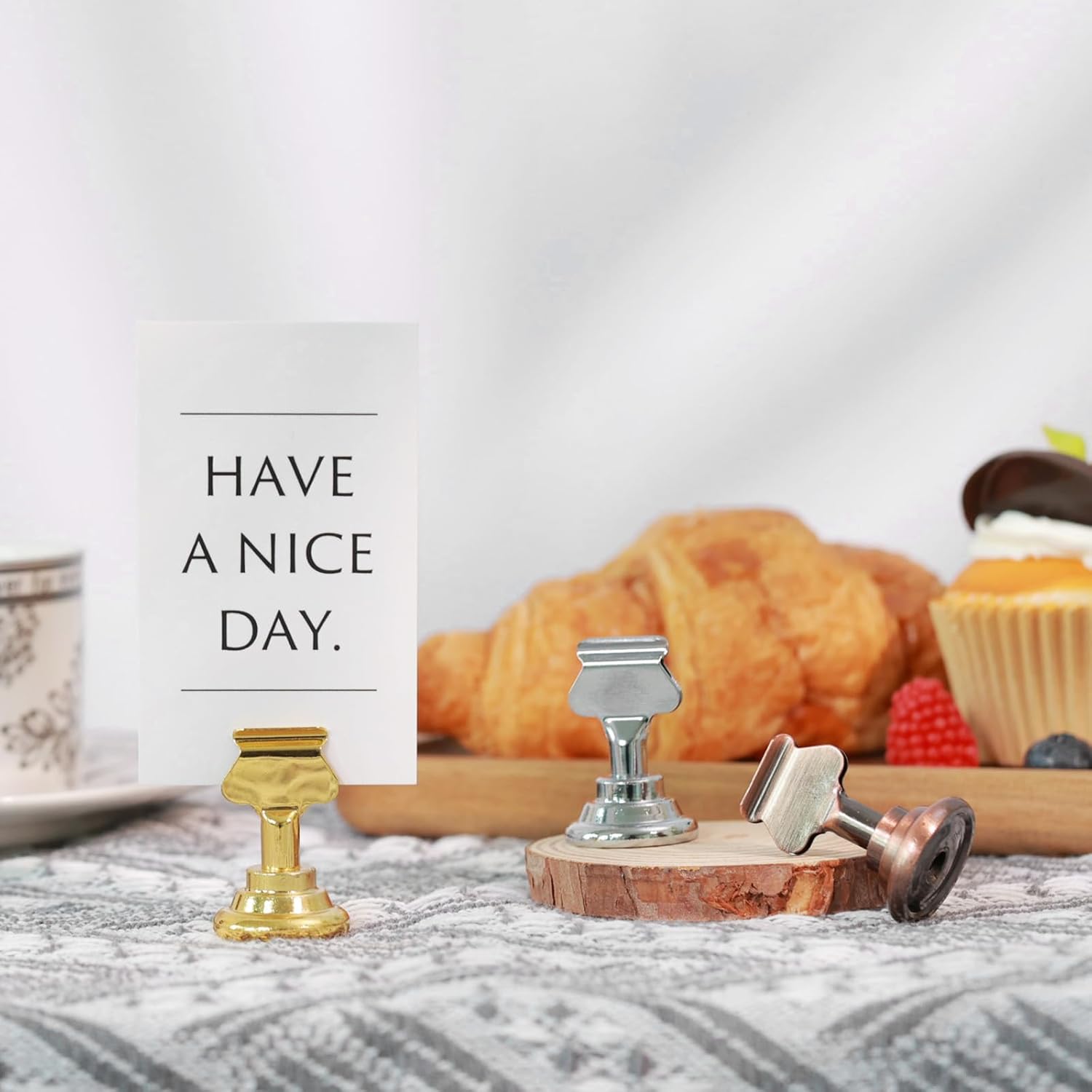 - Package includes: Set include 16 pieces table sign holders, size of photo holder is 1.7 inches, a total of five colors for you to choose, gold, black, silver, copper, rose gold, you can choose according to your occasion need