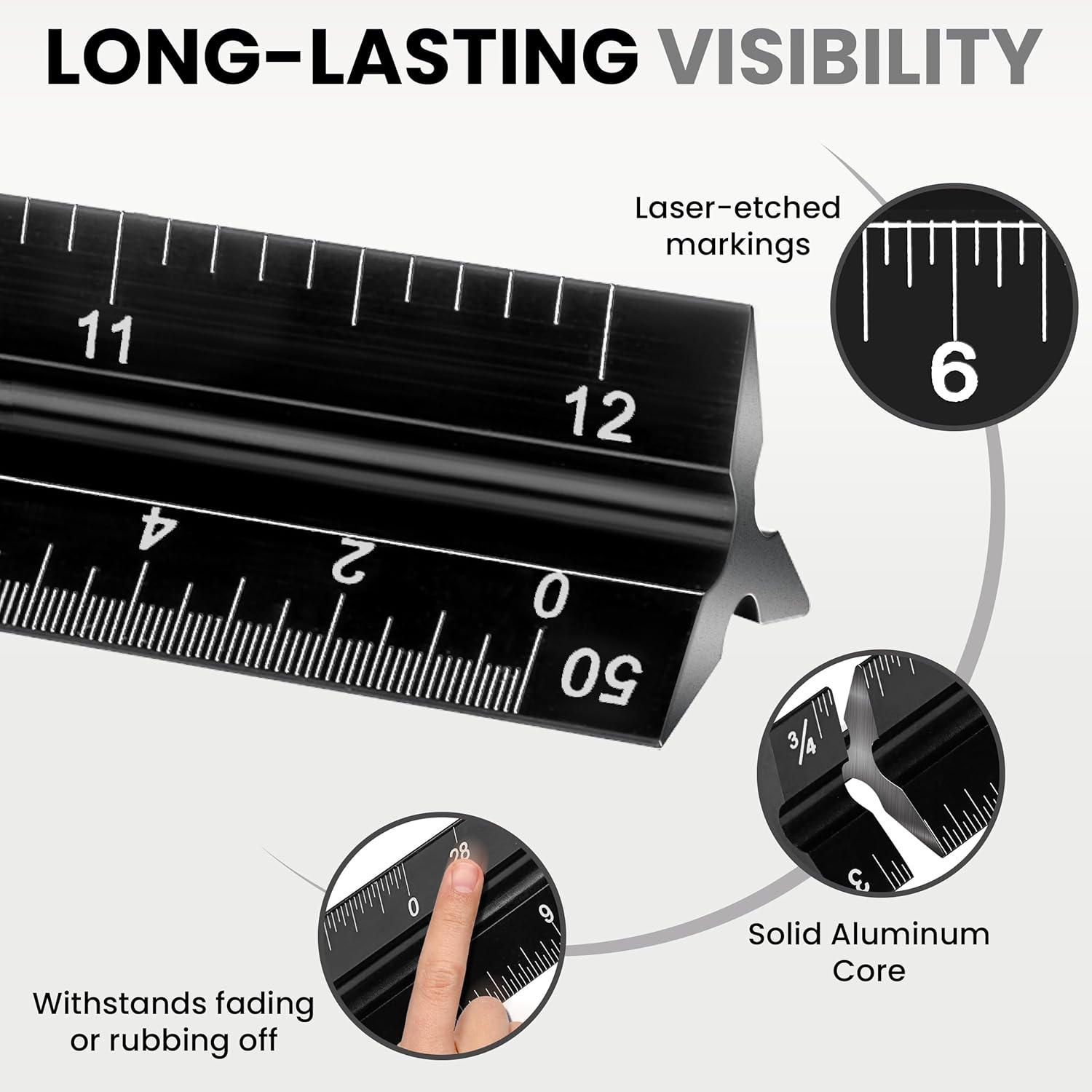 - Excellent Readability - With laser-etched white markings set on a black background, these rulers are easier to read than rulers with poor contrast or printed markings that easily fade or rub off.
