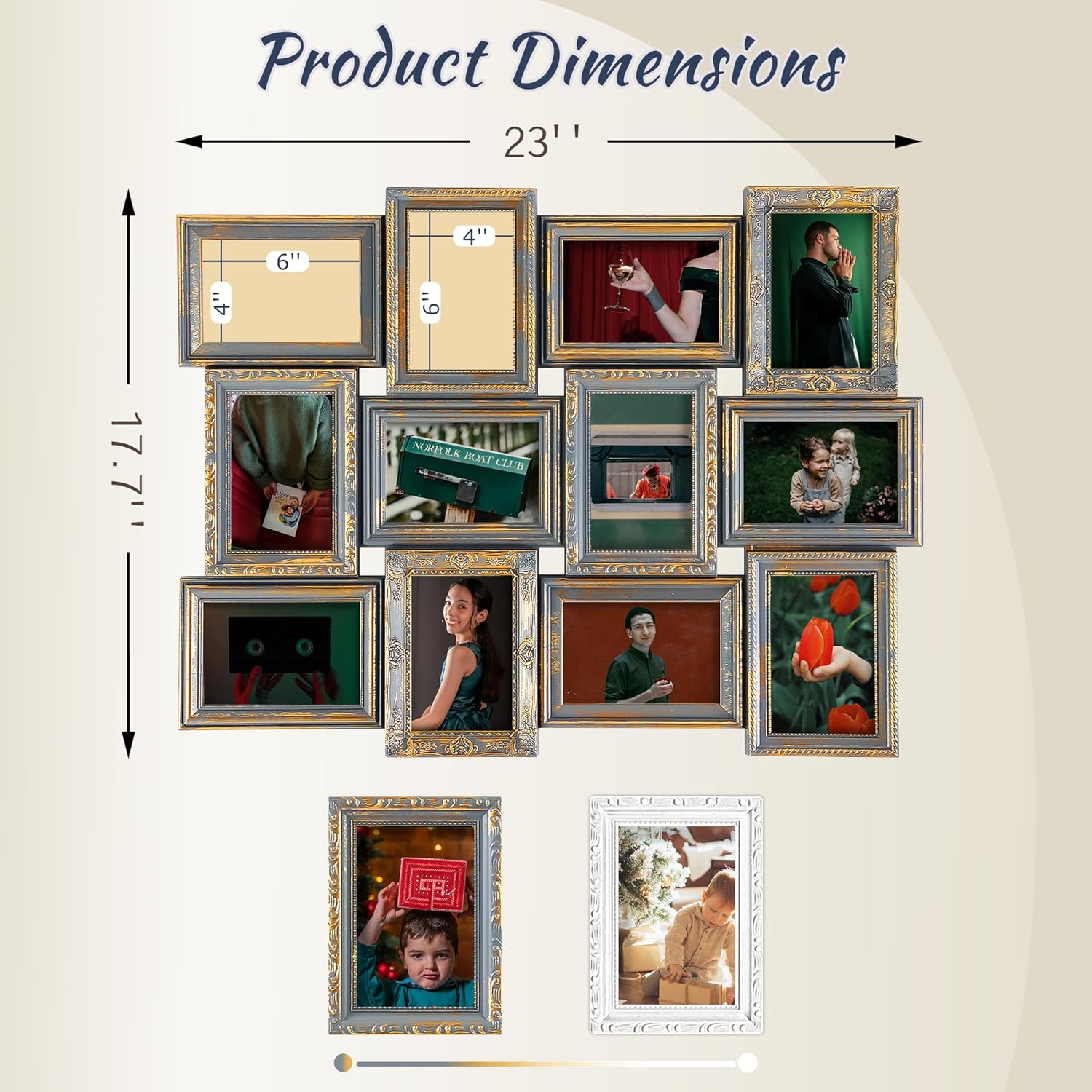 Jerry & Maggie 12 Opening Collage Photo Frame Rustic 23×18 Vintage Embossed Finish PVC Picture Frames Selfie Gallery Collage Wall Hanging For 6×4 Photo, Vintage