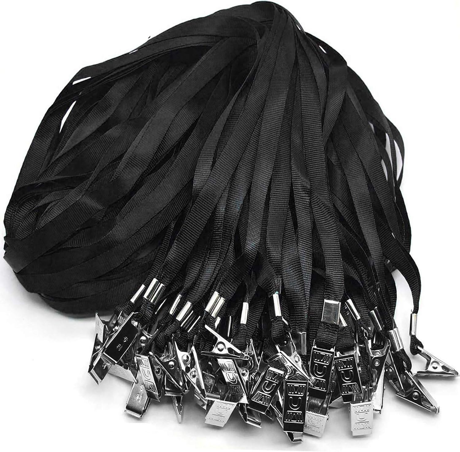 Beebel Black Lanyards 100 Pack Nylon Flat Badge Lanyard Bulldog Clip for Id Badge Name Tags