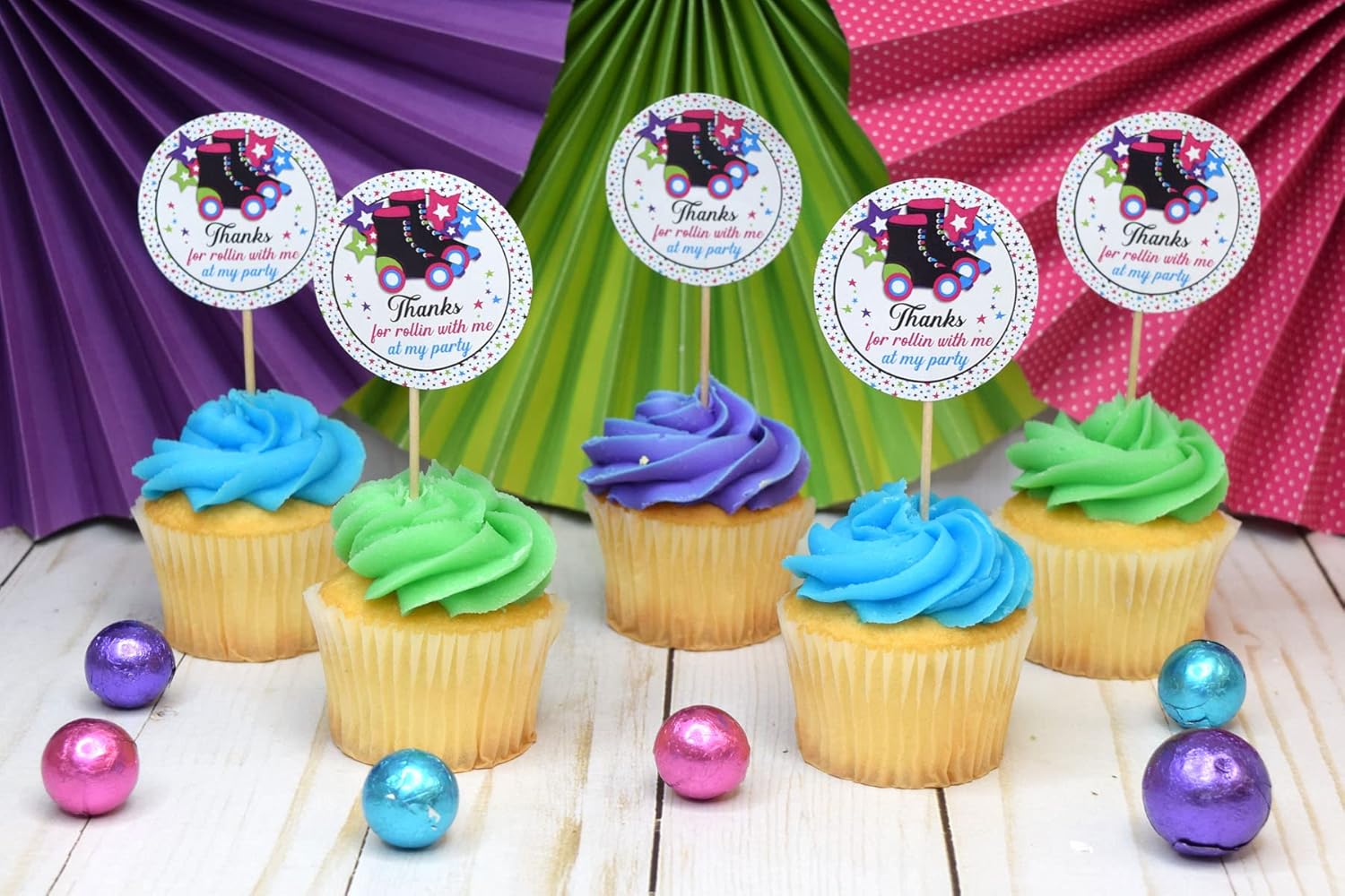 Let’s Roll Star Roller Skating Themed Thank You Sticker Labels for Kids, 40 2" Party Circle Stickers by AmandaCreation, Great for Party Favors, Envelope Seals & Goodie Bags