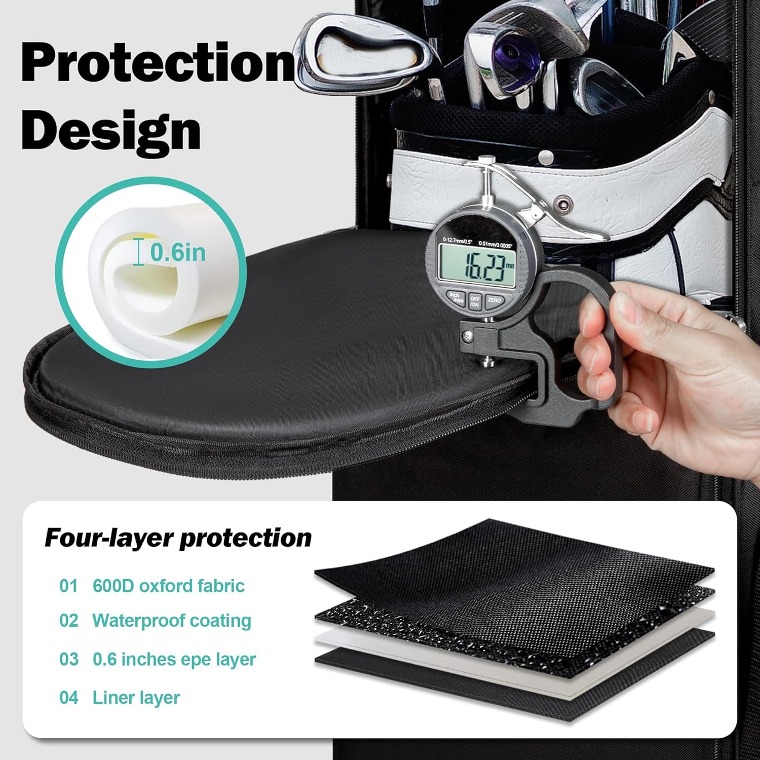 - HIGH QUALITY MATERIAL: Made of premium 600D heavy duty polyester oxford, tough enough to protect your golf clubs during travel
