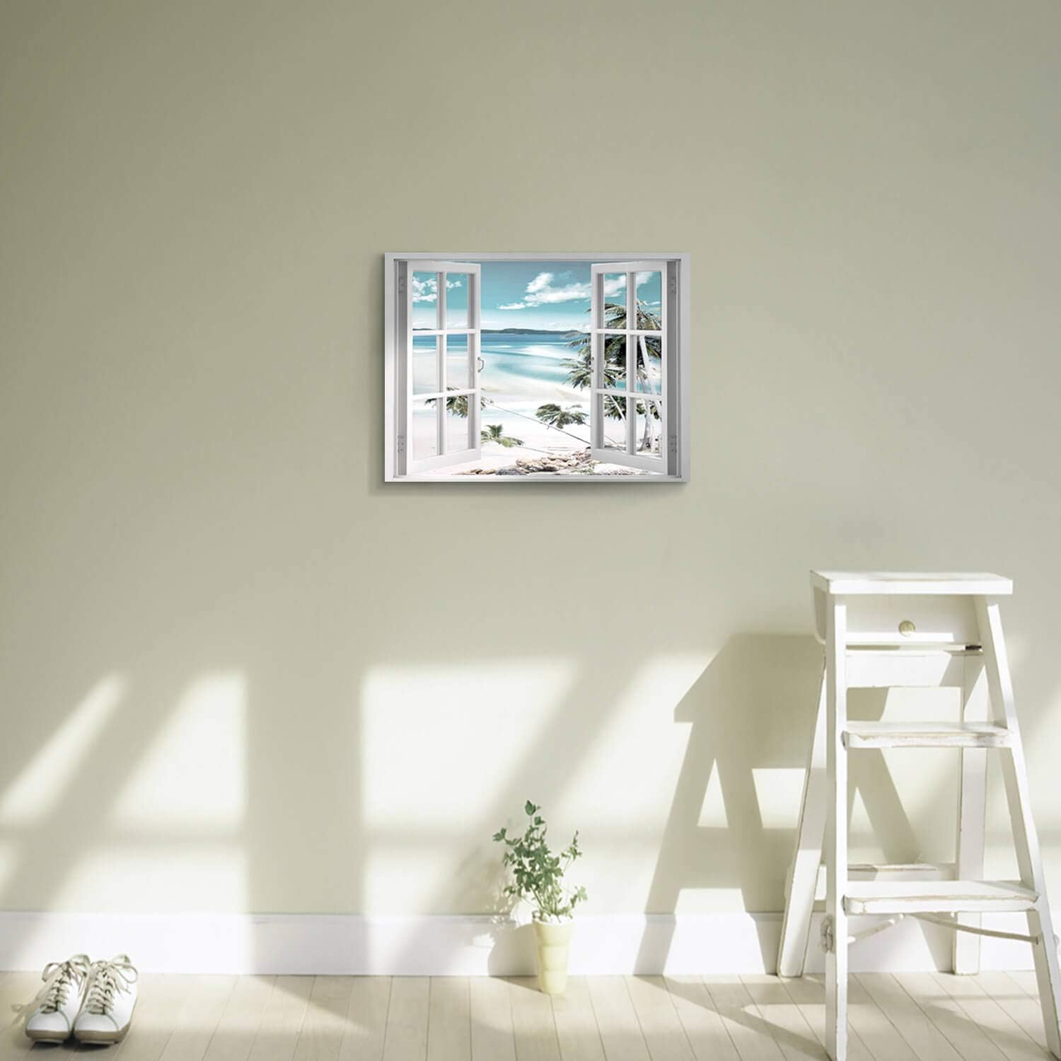- Window Art Pictures: Since wall-mounting hardware is included, this open window to ocean wall art is ready to hang as soon as it reaches your door