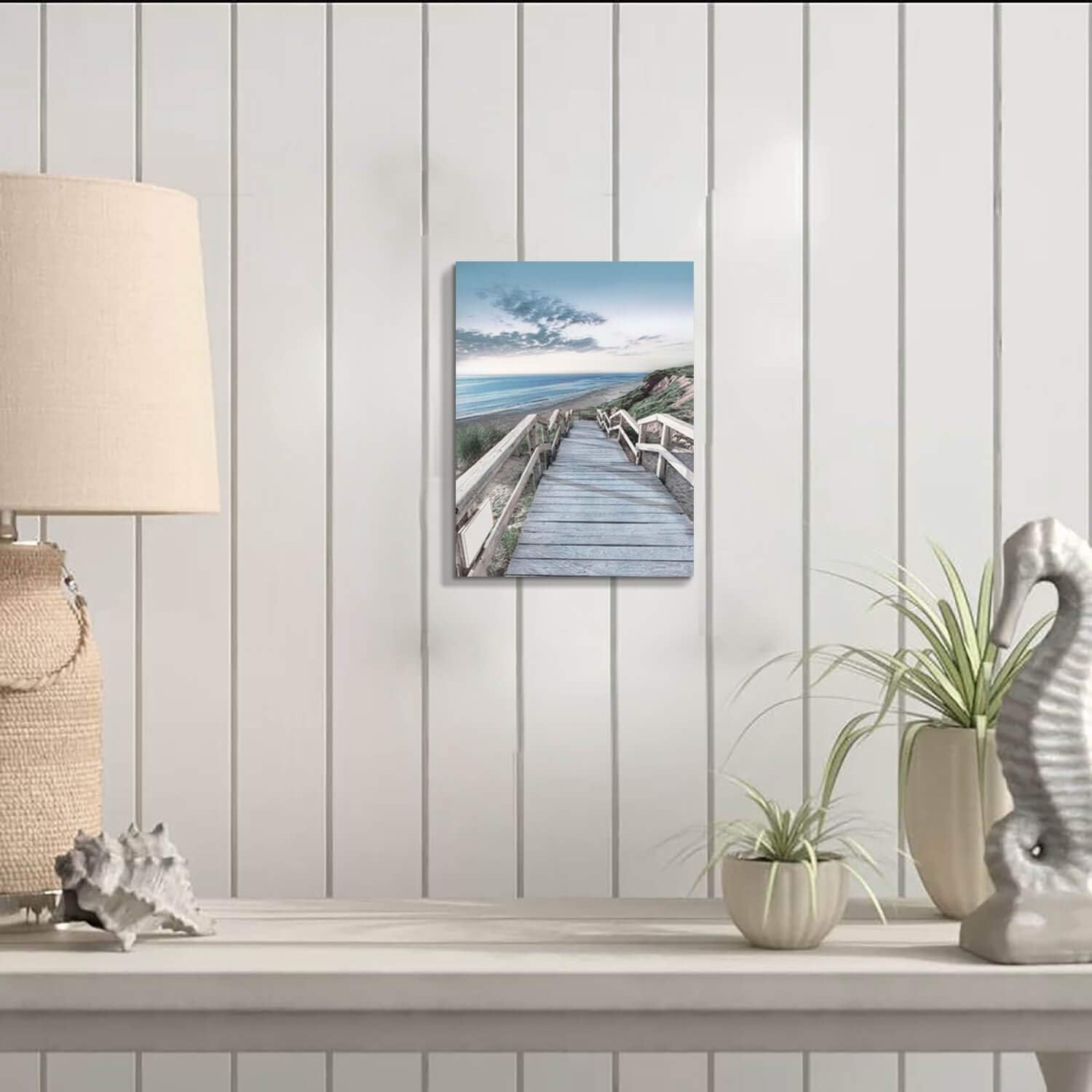 - Beach Rustic Boardwalk Wall Art: Includes pre-installed grey beach artwork wall decor, hang anywhere with the attached sawtooth hardware, ready-to-hang