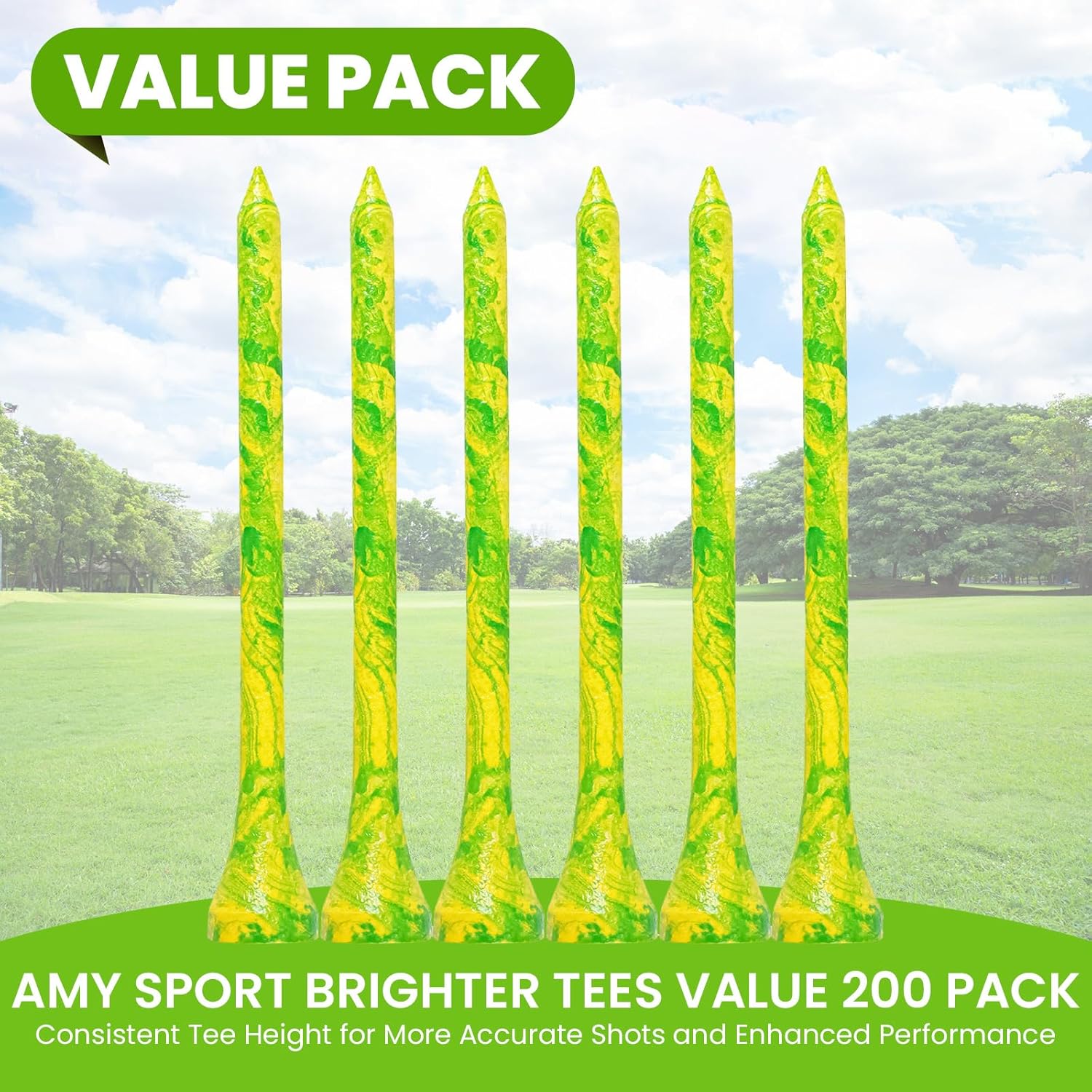 Amy Sport Golf Tees Styllish Bamboo Wooden Coloured Painted Bulk 200 Pack 1 1/2 3 1/4 2 3/4 Inch Tee, Enhanced Visibility Color Purple Pink Green Blue, Practice for Men Women