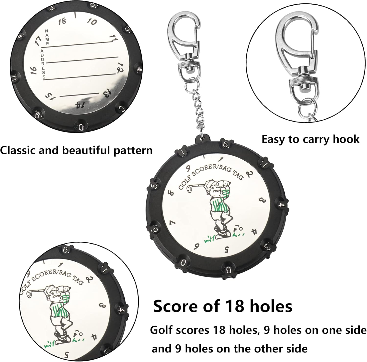 Golf Score Counter 18 Holes Golf Score Stroke Shot Counter Keeper Round Scoring Tag with Clip Keychain
