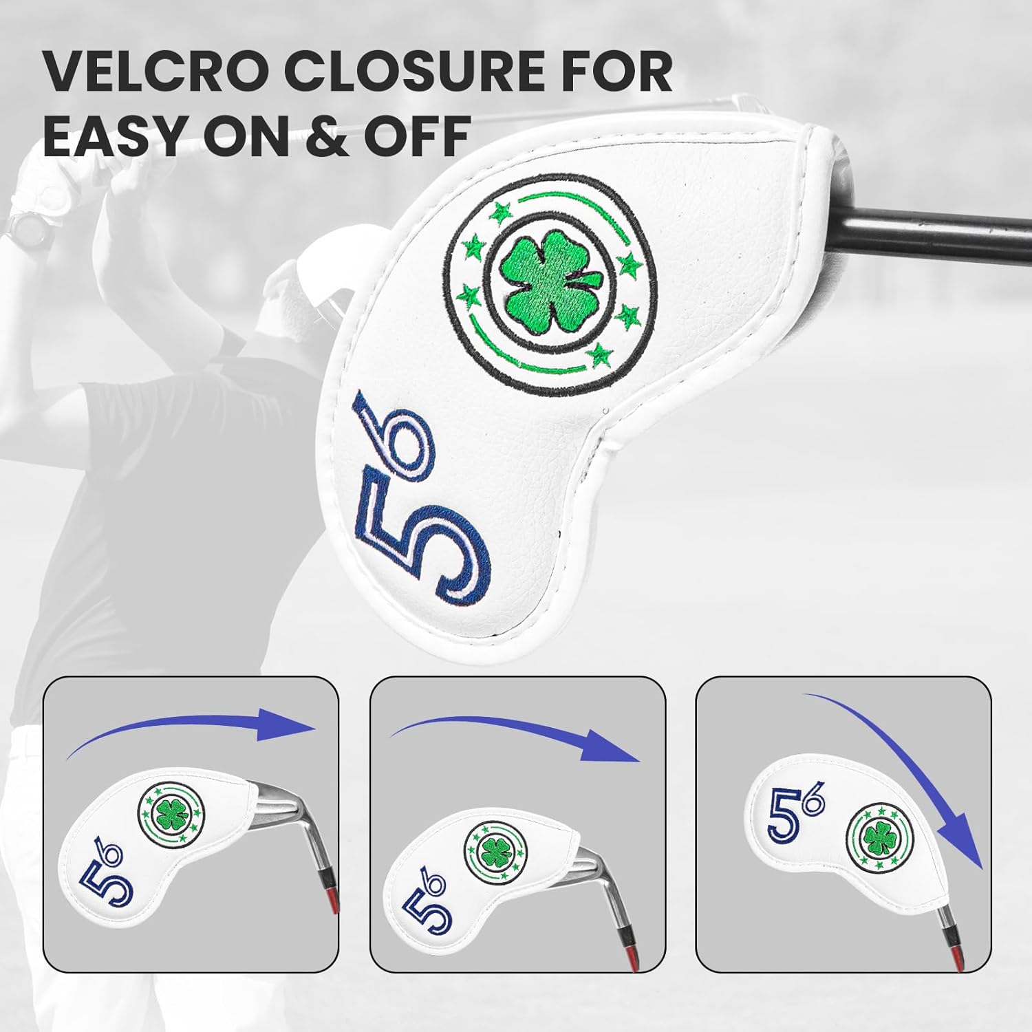- Clear Identification: Featuring simple designs such as white&clover or USA flag, each cover includes clear number tags for quick club selection on the course. This makes it easy to grab the right wedge instantly, adding a subtle personal touch to your bag without flashiness.