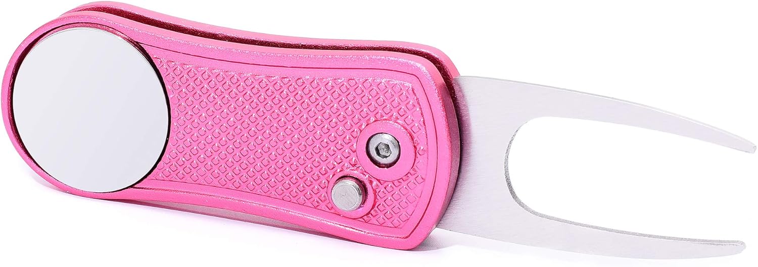 Mile High Life Golf Divot Repair Tool, All Metal Foldable Divot Tool with Pop-up Button & Magnetic Ball Marker