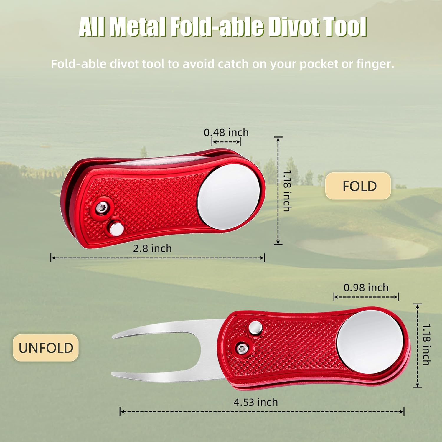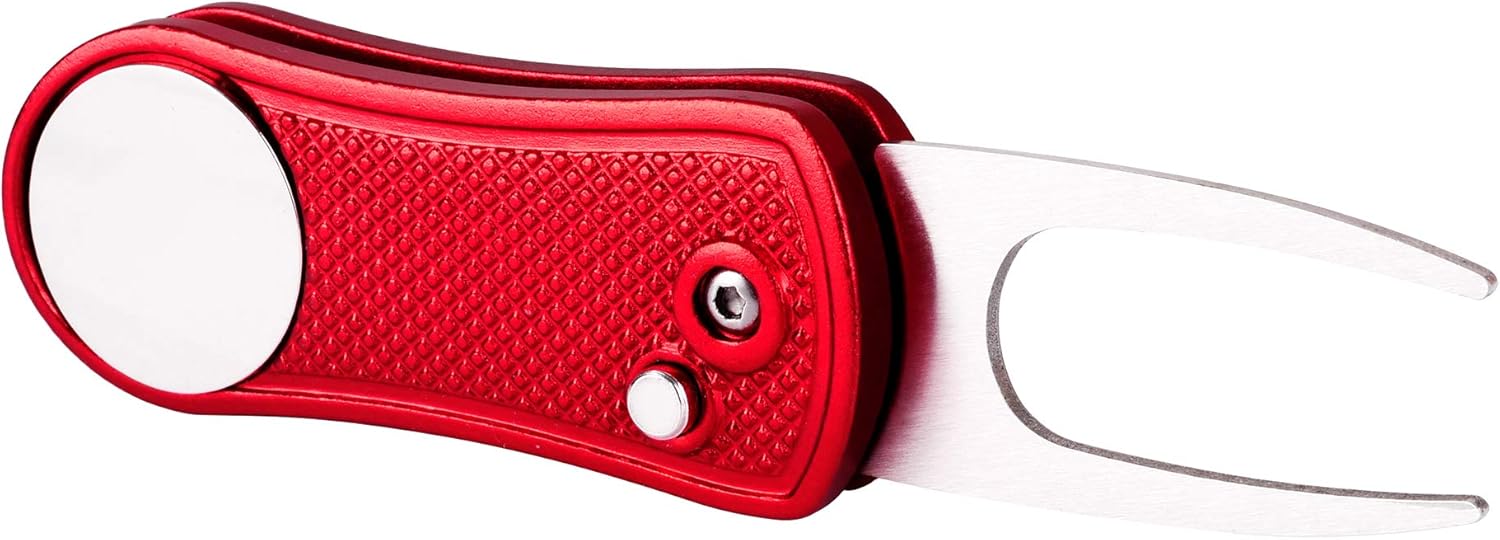 Mile High Life Golf Divot Repair Tool, All Metal Foldable Divot Tool with Pop-up Button & Magnetic Ball Marker