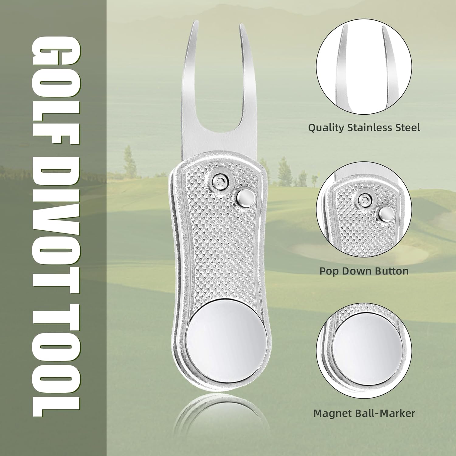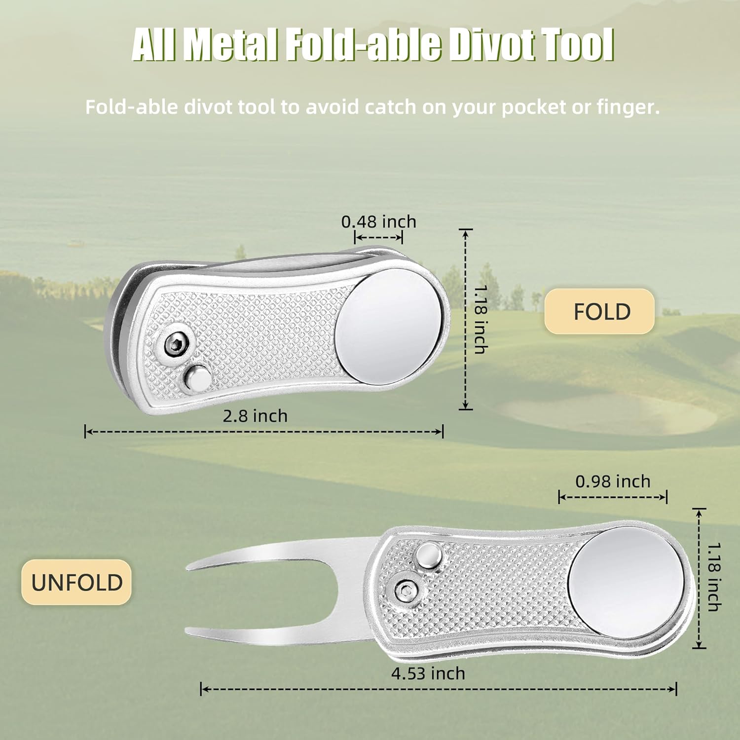 Mile High Life Golf Divot Repair Tool, All Metal Foldable Divot Tool with Pop-up Button & Magnetic Ball Marker