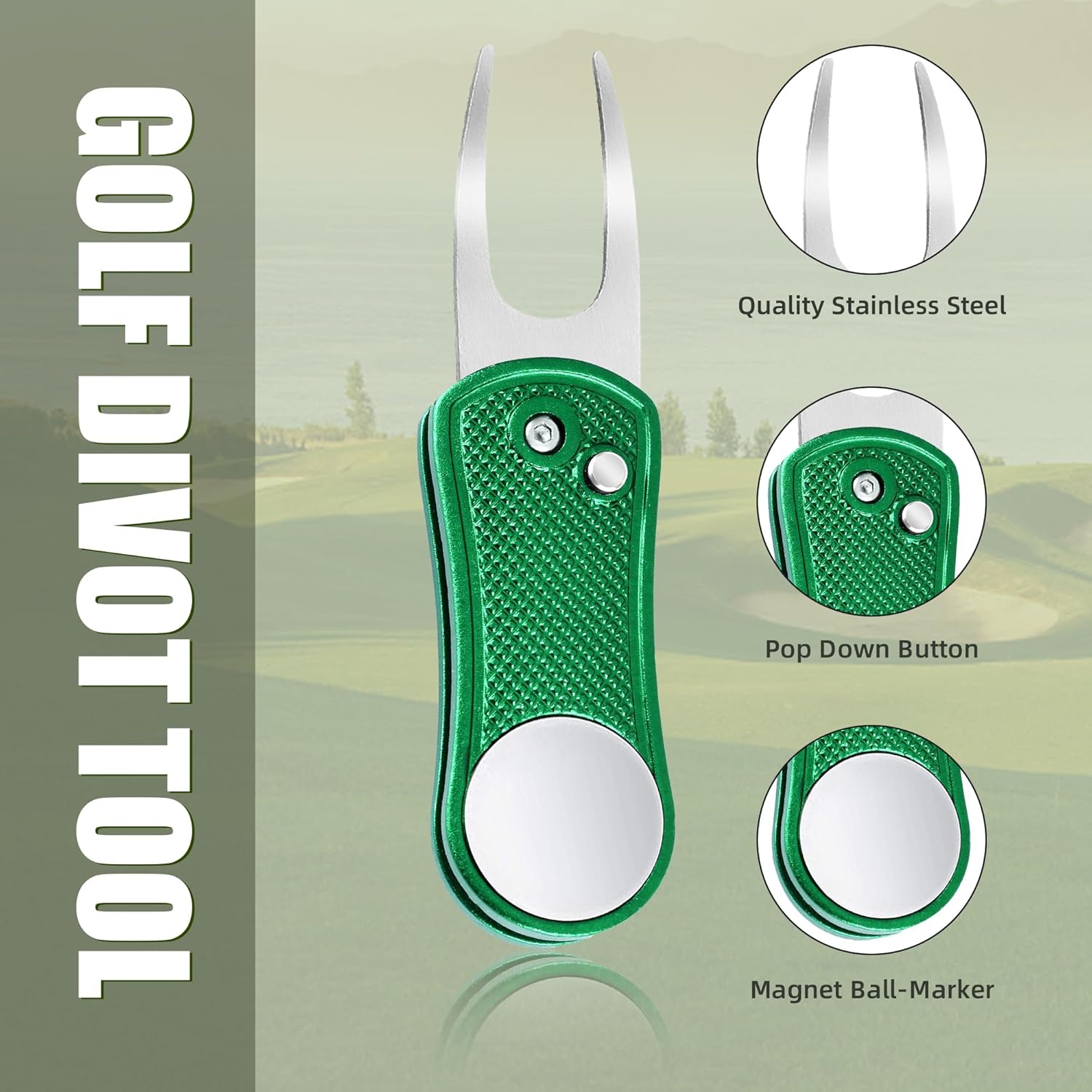 Mile High Life Golf Divot Repair Tool, All Metal Foldable Divot Tool with Pop-up Button & Magnetic Ball Marker