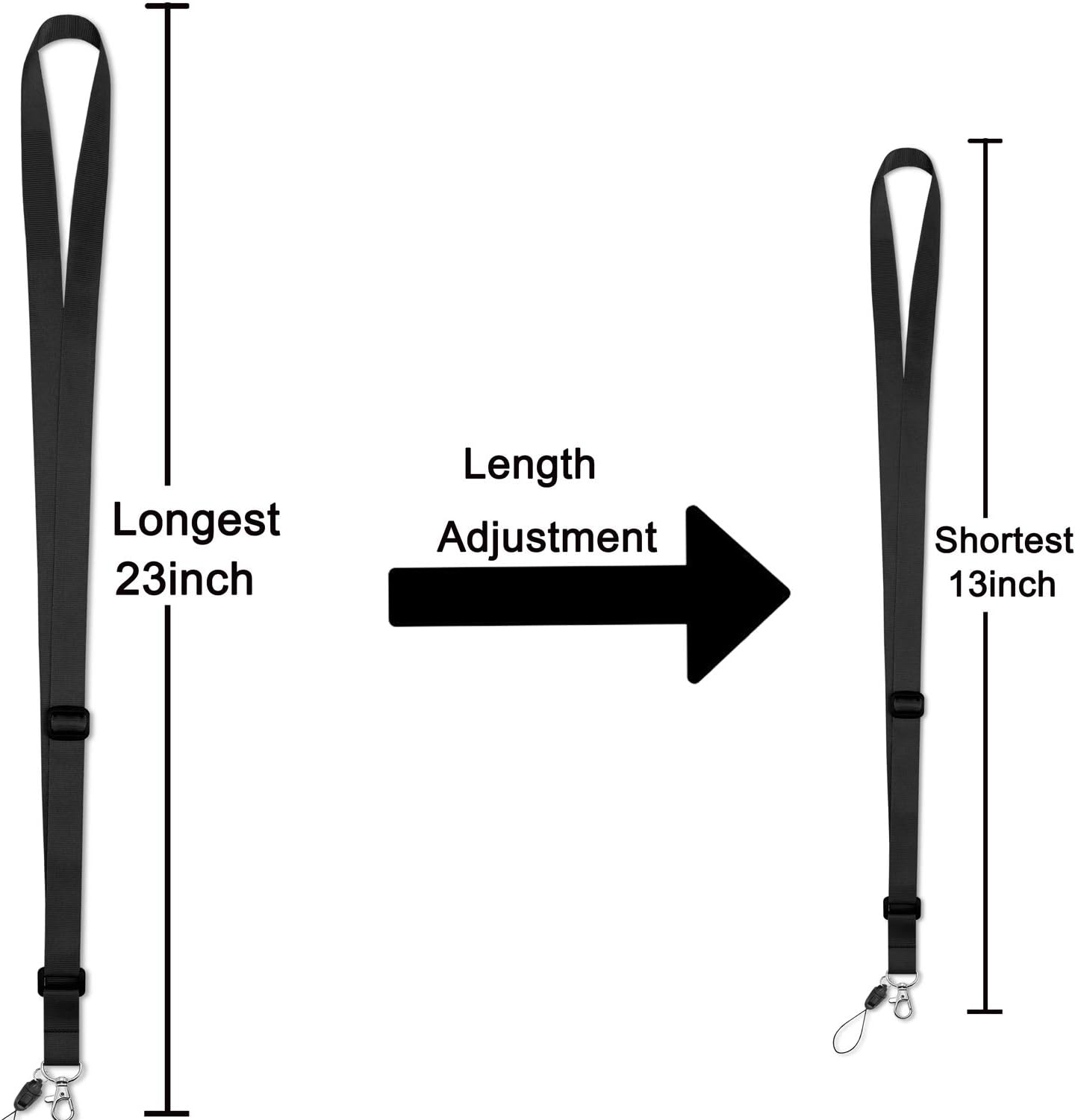 - EXTENSIBLE LENGTH – The strong yet soft lanyard is adjustable from 11.4"(Overall 13") to 21.4"(Overall 23")which can also convert the lanyard into a shortened wrist-strap style.