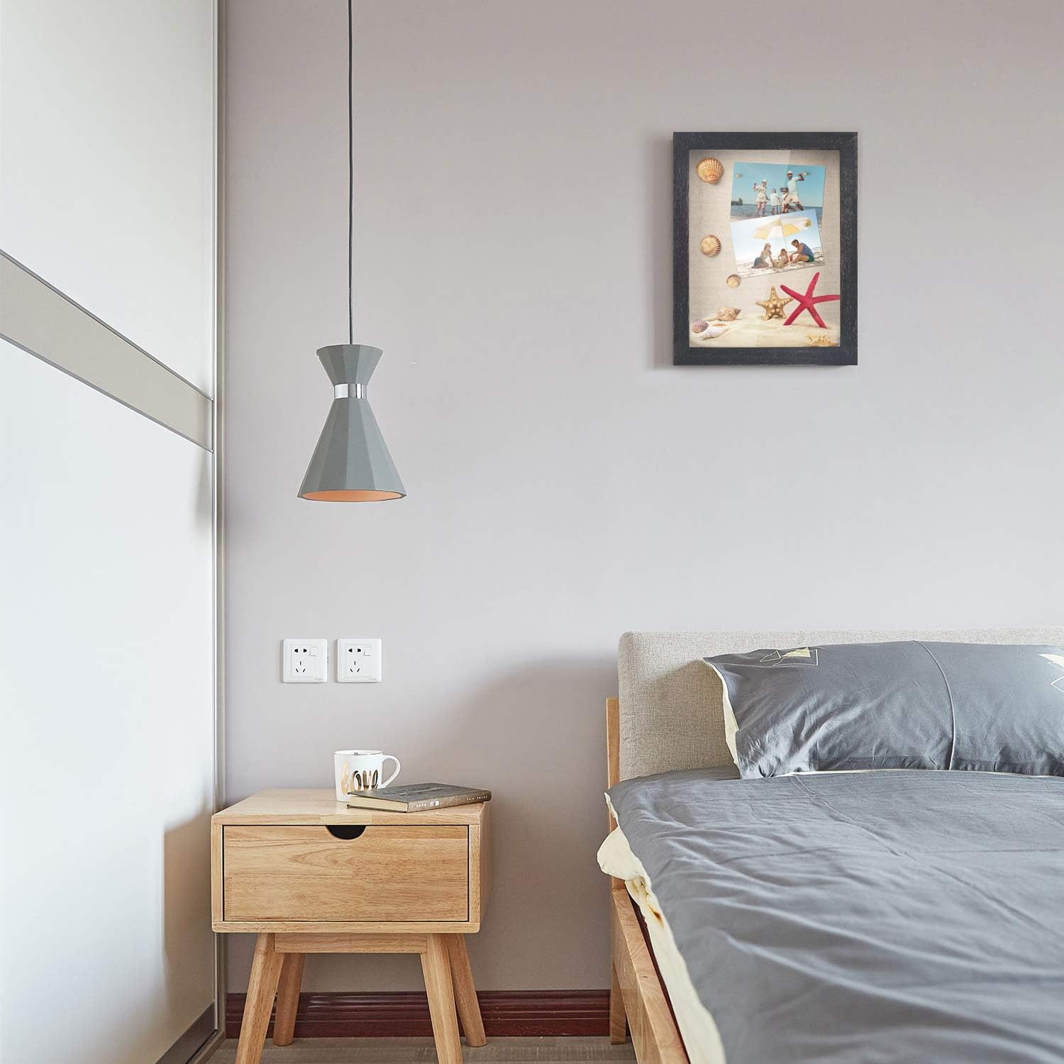 - Memory box - Inside the frame is a linen cloth with pins so you can arrange a personalized collage with photos, cards, concert tickets, medals, dried flower and handicrafts, etc. Prefect choice to share your most cherished moments and memorabilia.