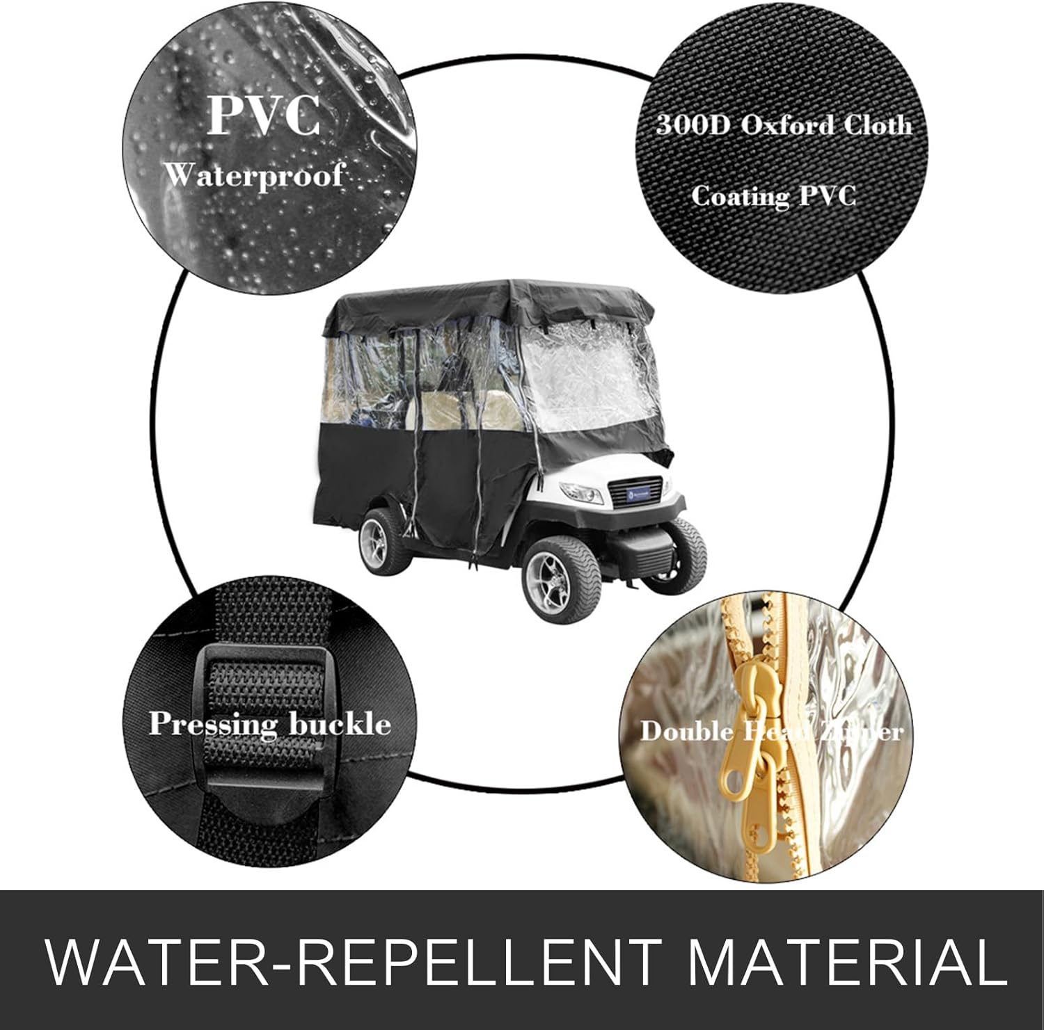 - Premium Material: Constructed of 300D Oxford cloth with PVC coating, PVC window, and #10 Resin Zipper, it is durable, against wind, sunshine and rainwater. Can keep the cart inside dry and clean, keep people inside warm. Let you enjoy golf with no worry.