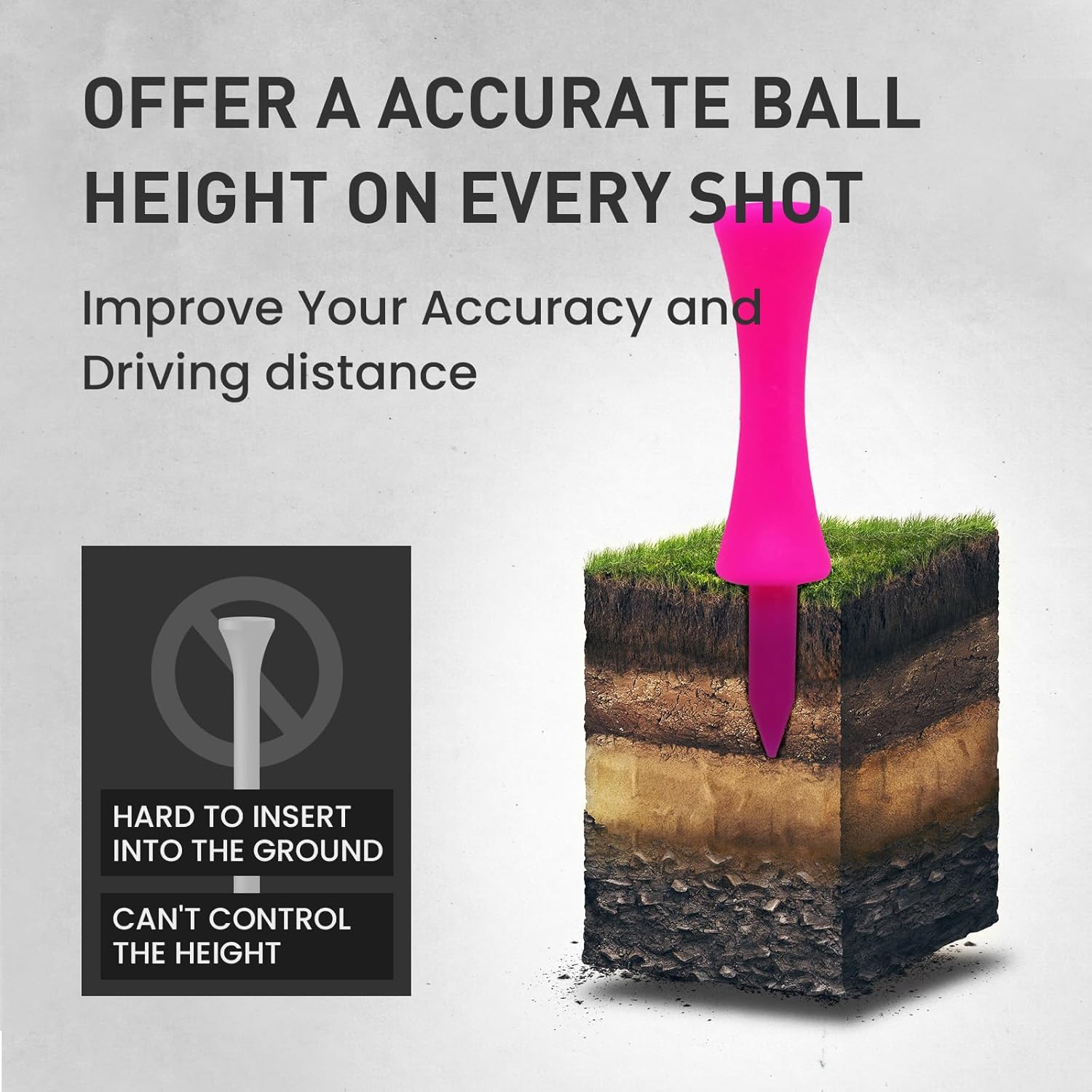 - Easy to Use: Easy to Push Into the Ground, Easy to Quickly Tee Up the Ball, Stable to Hold the Ball, and Won't Fall Off. Perfect for the Driver, Woods, and Irons to Get the Same Elevation on the Ball Time After Time.