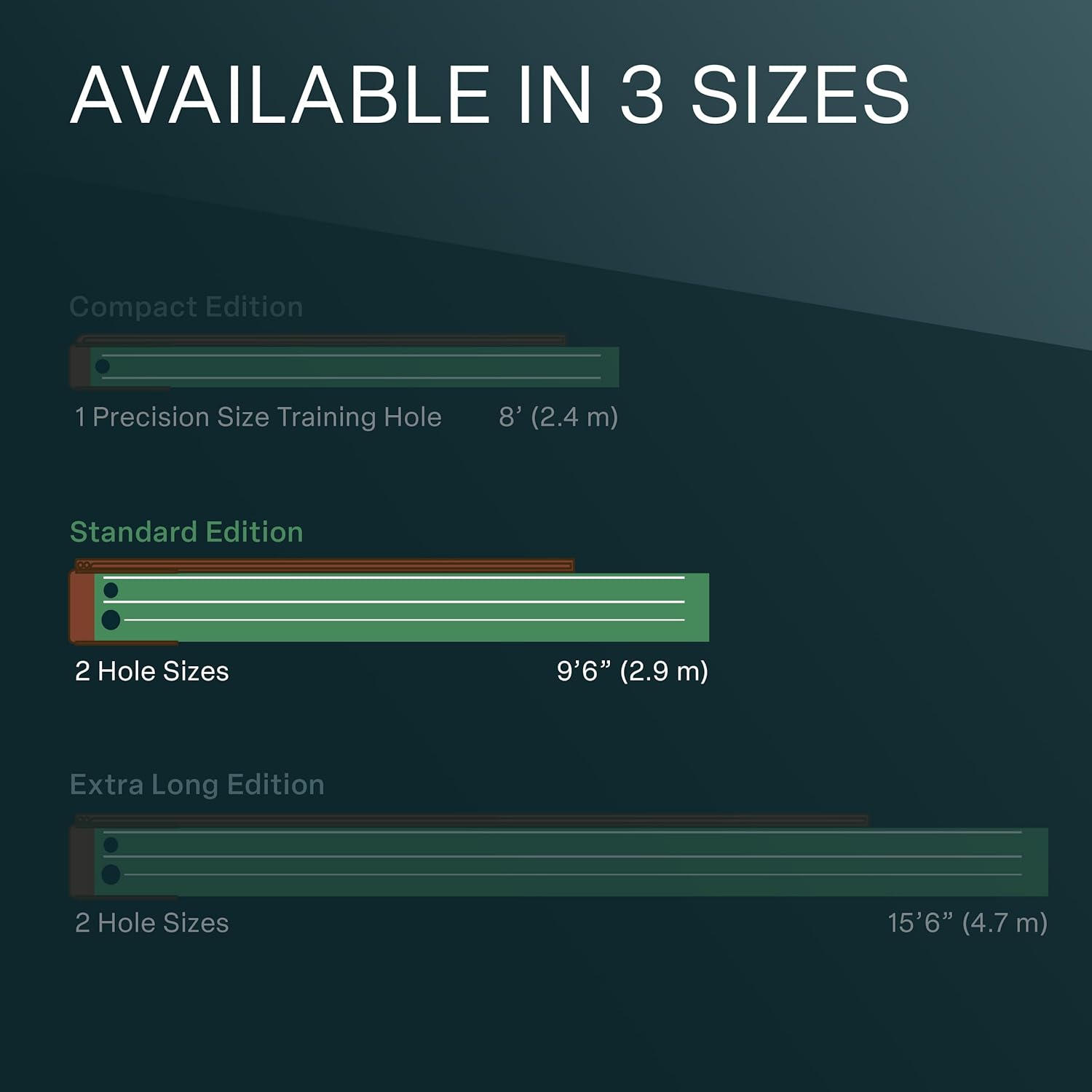 - Compact & Dual-Hole: At 9.5 feet, this Perfect Practice putting mat features a 2-hole layout for golf at home, indoors or outdoors, to refine accuracy and distance control.