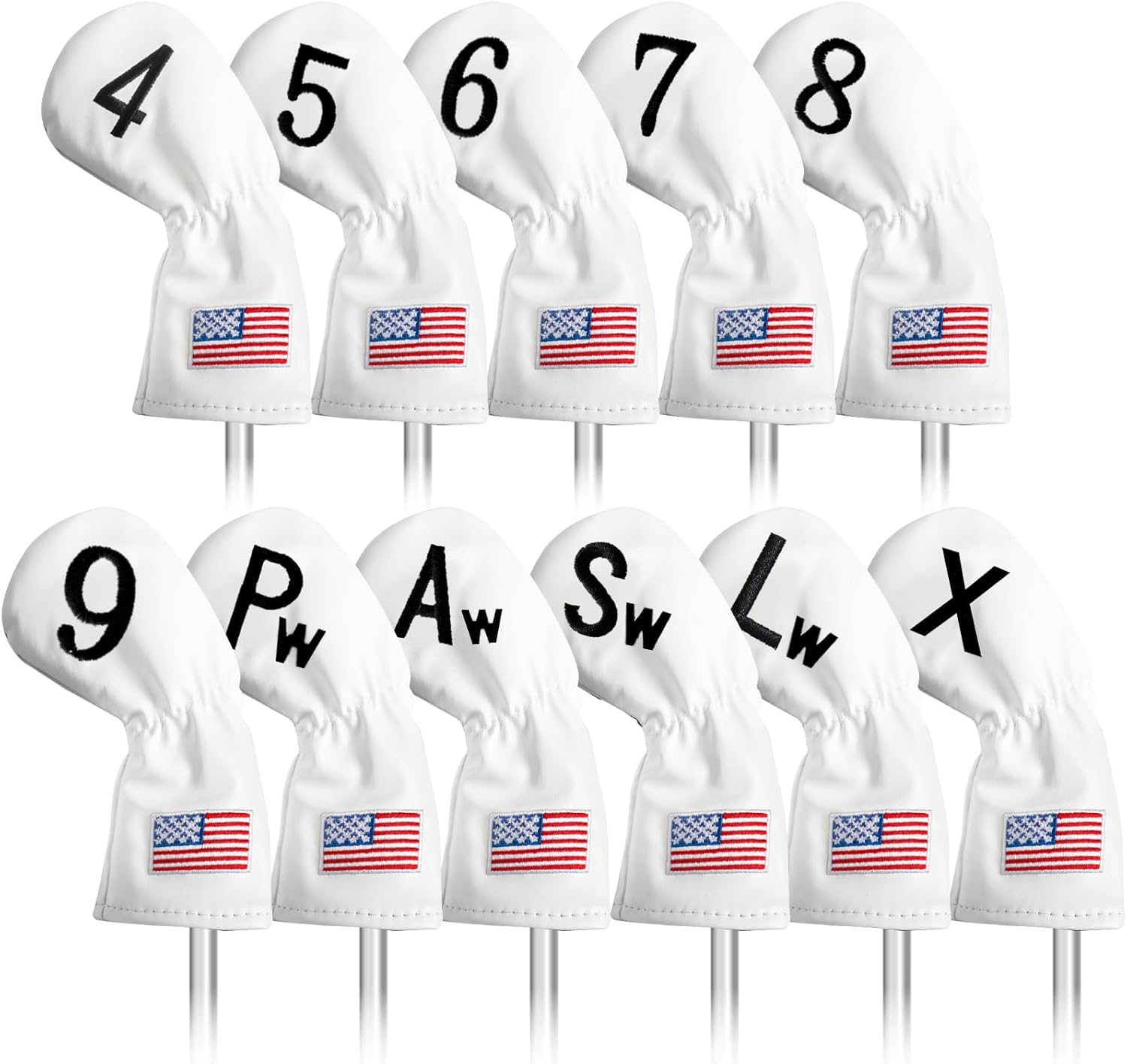 Golf Iron Covers Set US Flag Leather for Irons Value 11 Pack, Long Neck Protector Number Headcover, Universal Head Cover Fit Main Iron Clubs for Men Women Golfer