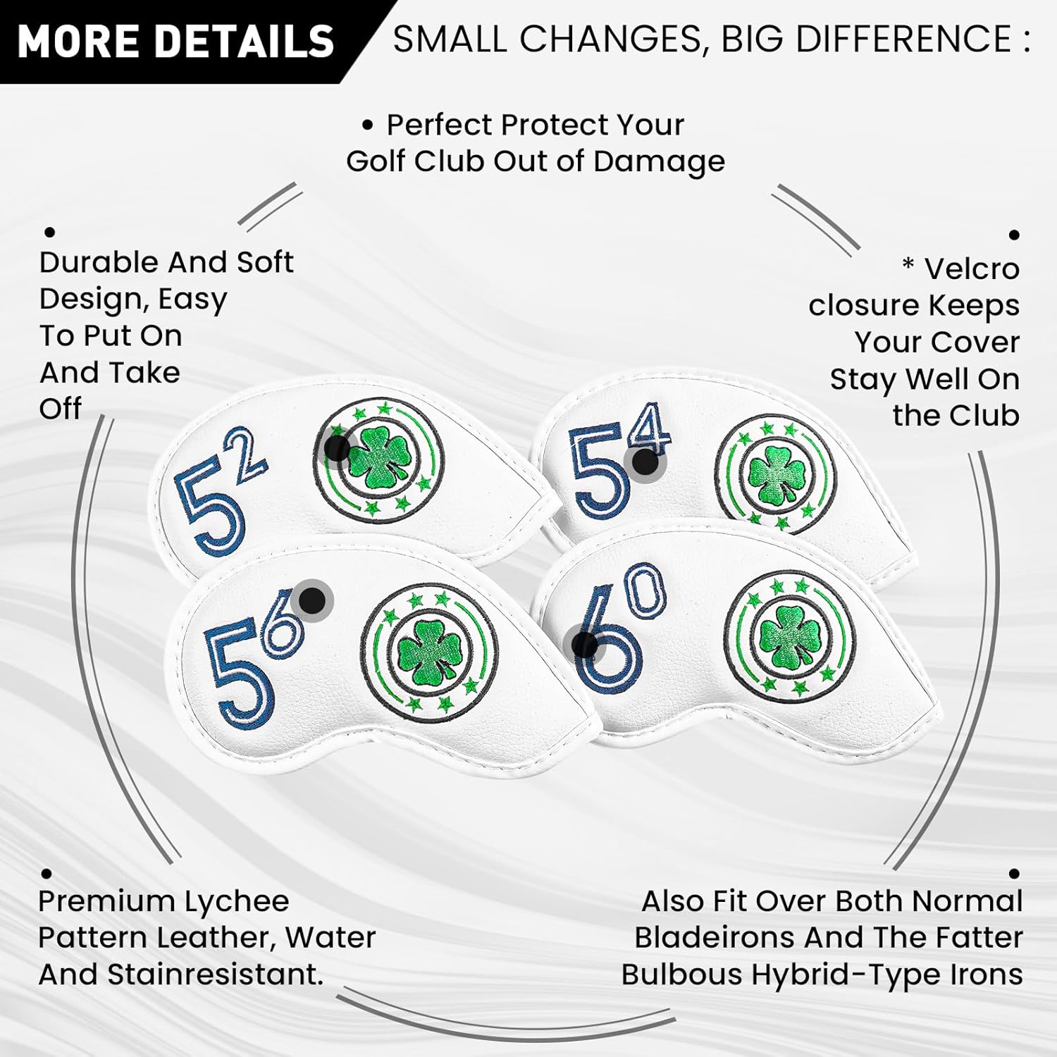 - Clear Identification: Featuring simple designs such as white&clover or USA flag, each cover includes clear number tags for quick club selection on the course. This makes it easy to grab the right wedge instantly, adding a subtle personal touch to your bag without flashiness.