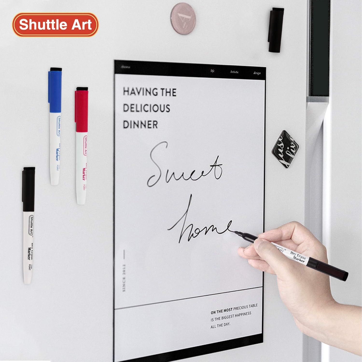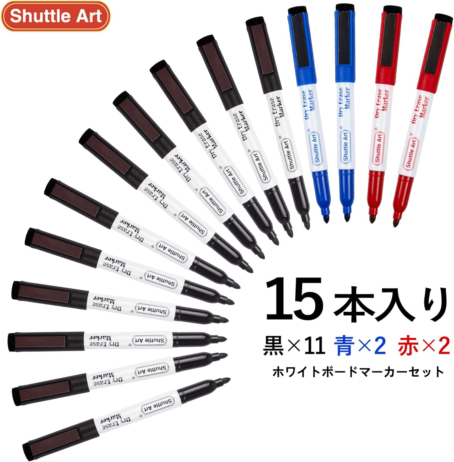 - 15 PACK: Shuttle Art 15 pack 3 colors, 11 black 2 blue 2 red magnetic dry erase markers with built-in eraser. More dry erase markers with cheaper price ! With durable bright ink easily to read markers in the classroom or council chamber.