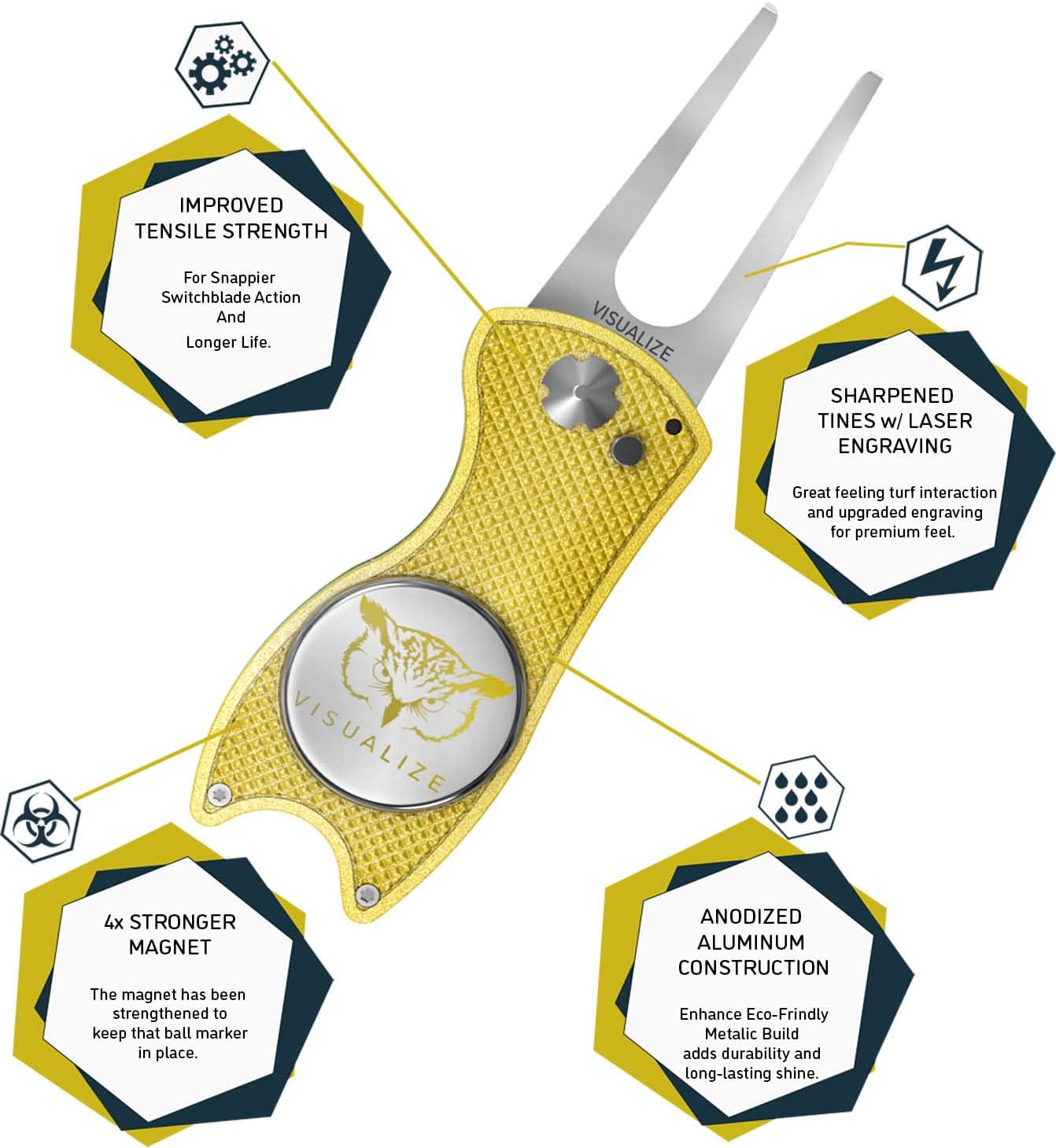 VISUALIZE Elite Switchblade Golf Divot Repair Tool Set with Ball Marker - Sturdy Anodized Aluminum - Perfect Golf Accessory Gift