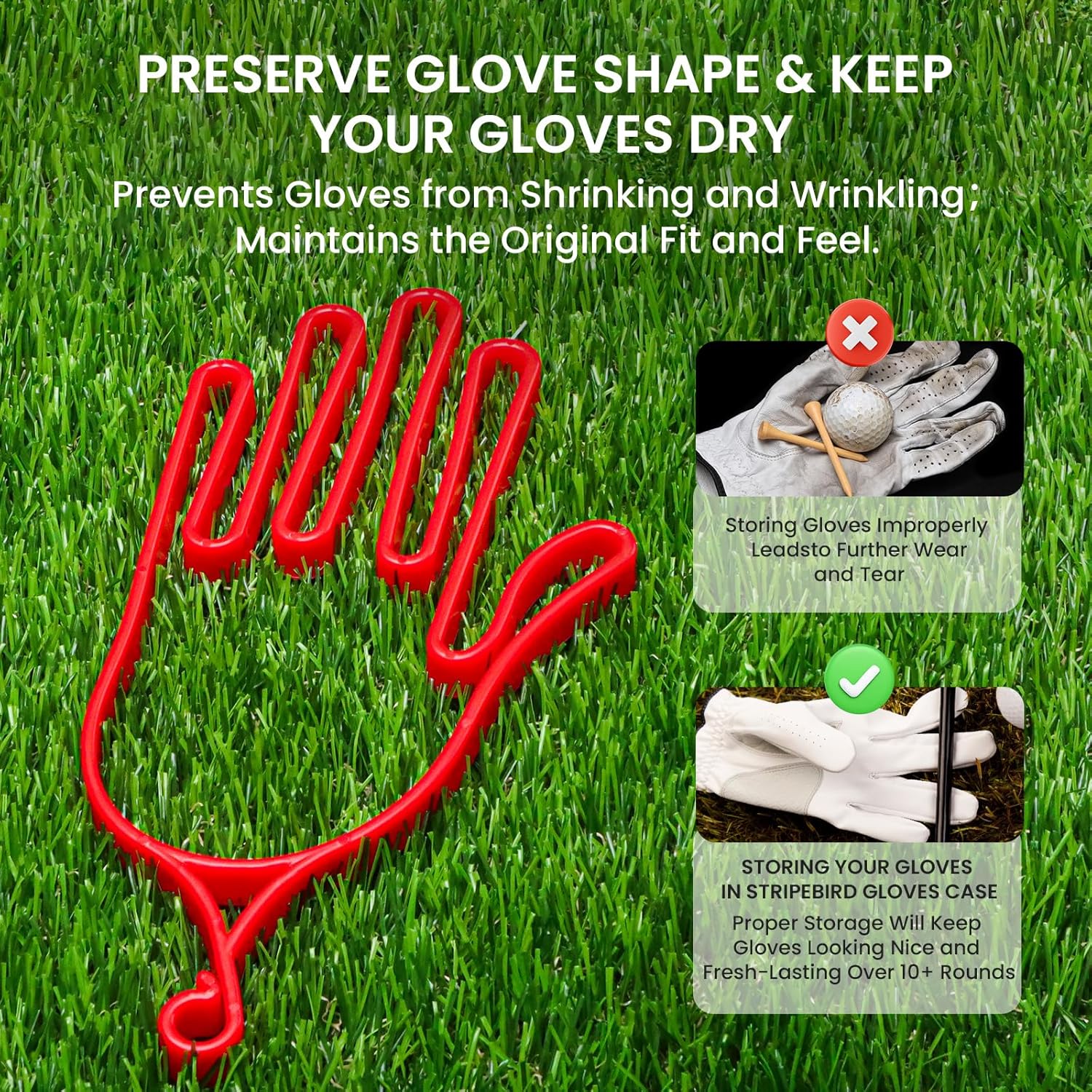 - Effective Performance: The Golf Glove Hanger is High Strength, it Plays an Important Role in Maintaining the Shape of the Gloves after Washing or Using. It can be Used for Drying Gloves to Speed up Drying and Extend Their Life; Keep Your Glove Looking and Feeling Like New;