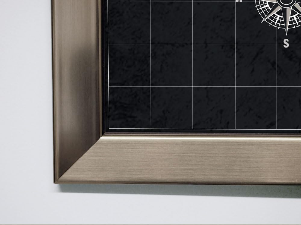- Expertly framed: finished dimensions are 22x33. We make each frame by hand and assemble in our build area. We add a silver metal frame to the Urban Slate map and secure it with staples before adding the hanging wire. These are built to last!